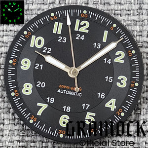 Gramock Classics Sterile 29mm Pilot Black Watch Dial Part for NH35/36 ETA PT5000 Miyota Mingzhu DG ST2130 Movement Part Hand Set