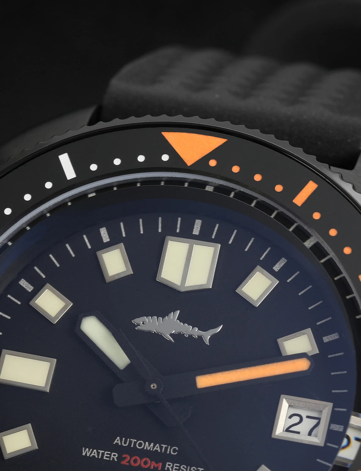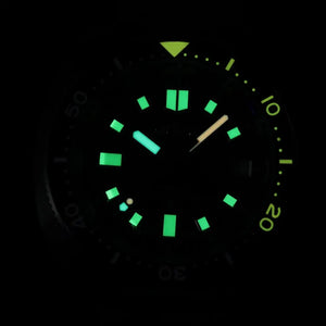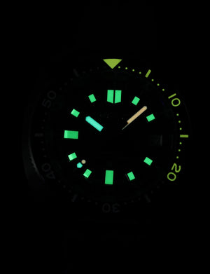 Applied C3 Super-LumiNova on hands and markers provides a bright, long-lasting green glow for easy readability in dark or underwater conditions.