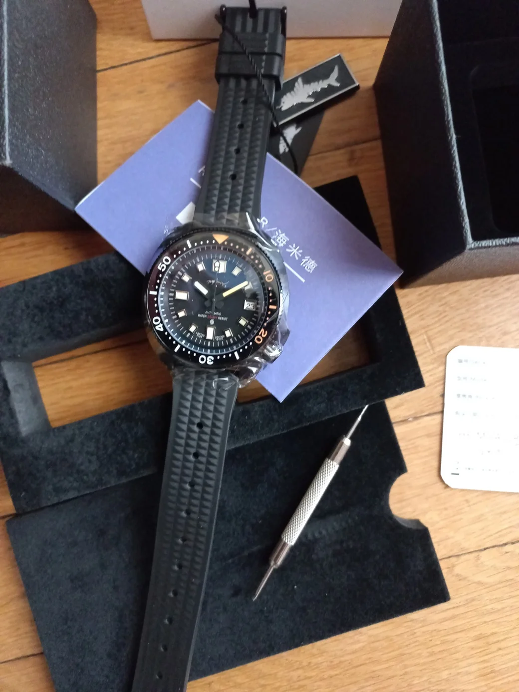 Powered by the robust and accurate Seiko NH35A movement, known for its reliability, 41-hour power reserve, and easy serviceability.