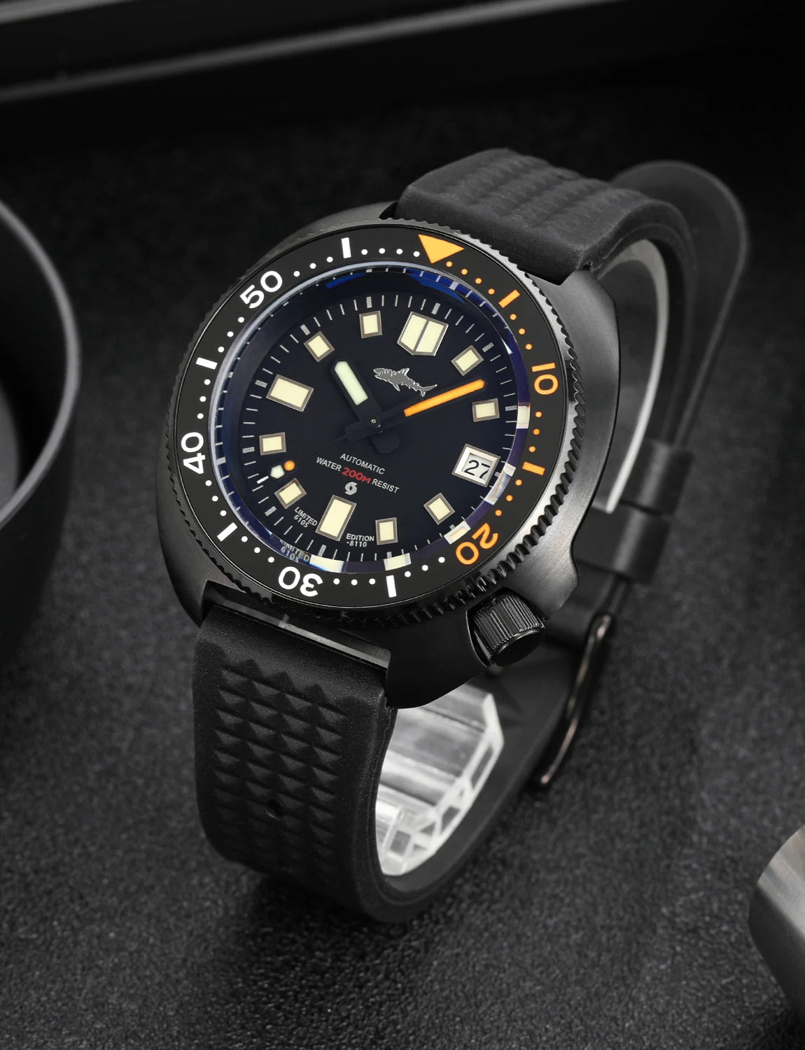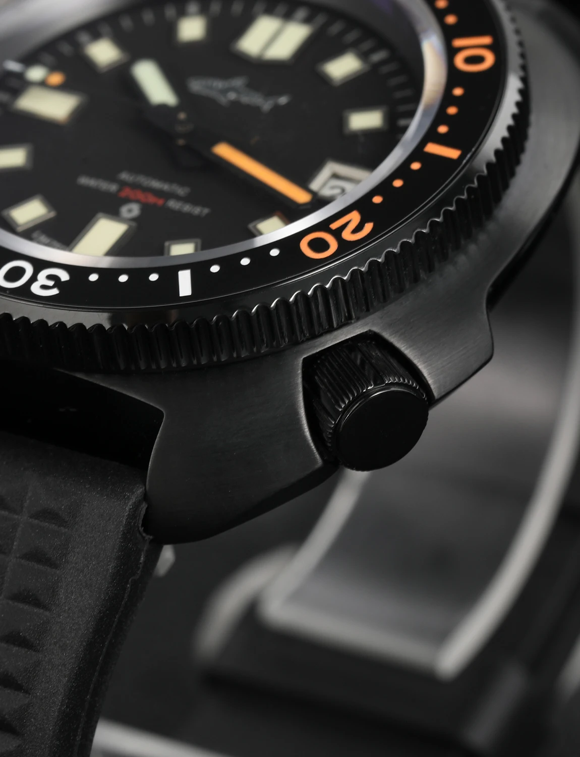 Built to withstand depths up to 200 meters, with a screw-down crown, solid case back, and pressure-resistant construction for reliable underwater performance.