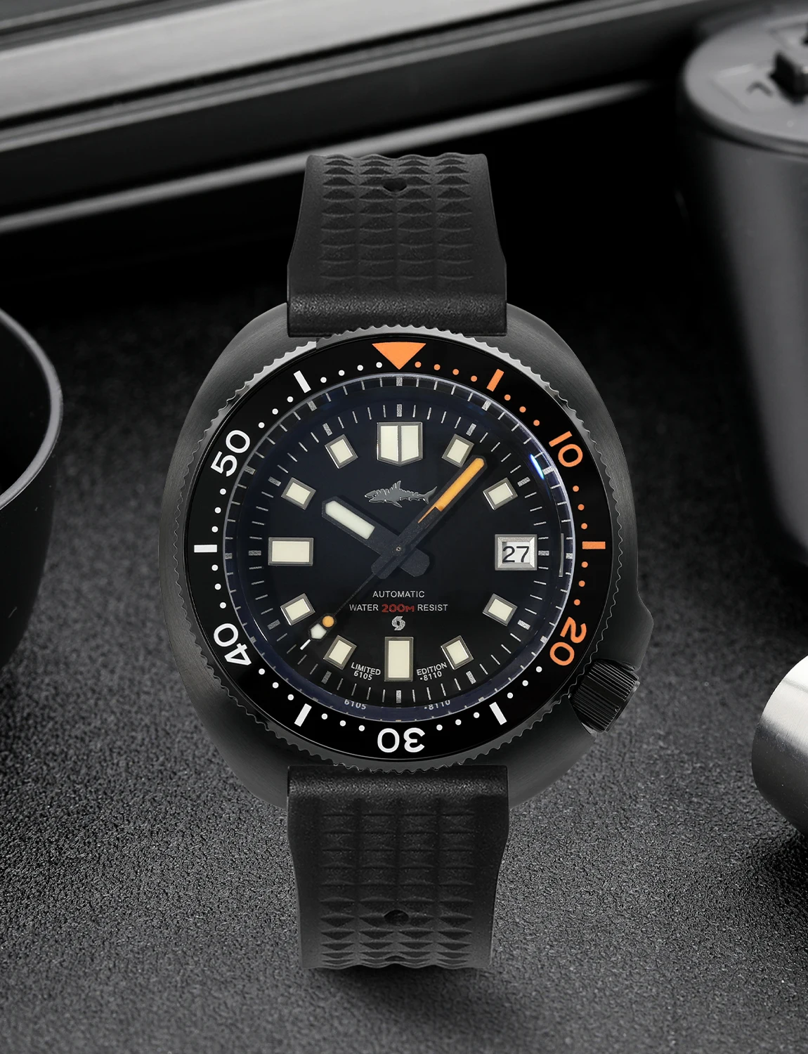 Based on the classic 6105 silhouette, this watch offers a distinctive, rugged aesthetic with a modern matte black PVD finish for added durability and stealth.