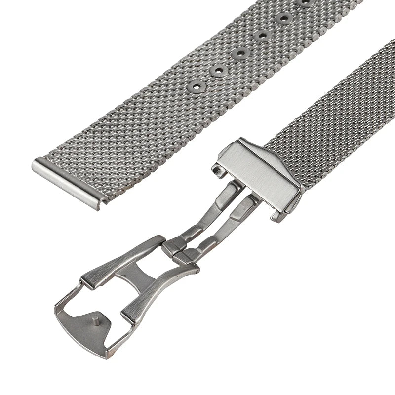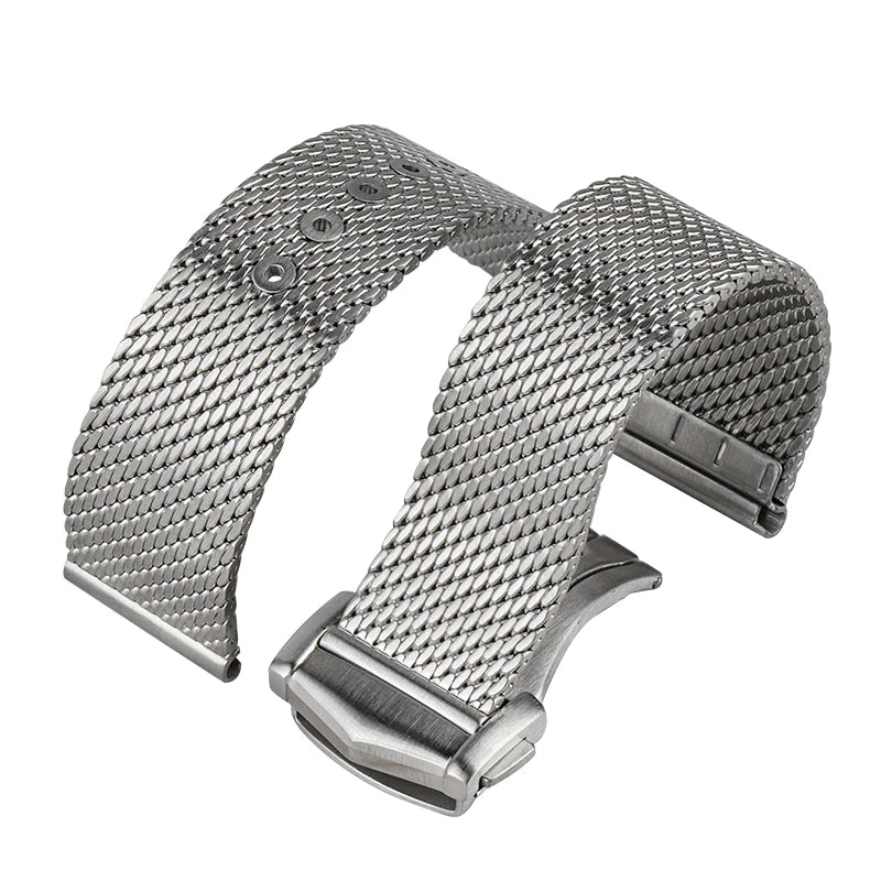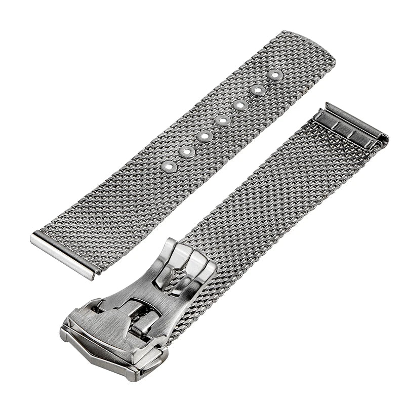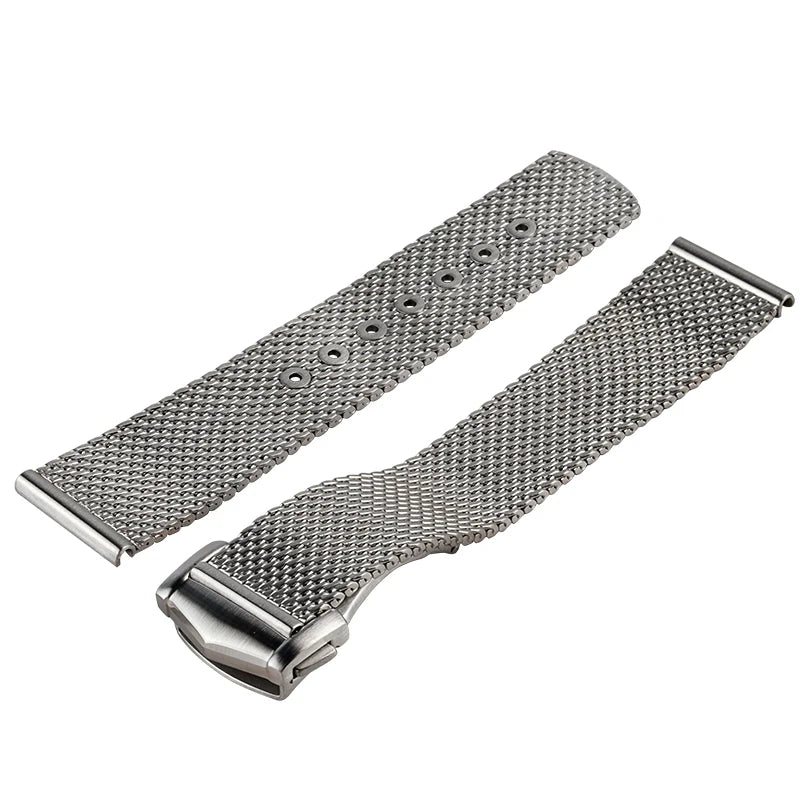 Engineered for versatility and durability, this stainless steel mesh strap delivers refined aesthetics with practical functionality. The flat-end design ensures seamless compatibility with 20mm lug widths, making it an ideal universal replacement for dive watches and sport timepieces. Constructed from premium-grade stainless steel, the mesh weave resists corrosion while maintaining a sophisticated appearance suitable for both casual and formal settings. The secure clasp mechanism provides reliable retention, while the flexible mesh construction adapts comfortably to varying wrist sizes. Perfect for upgrading your Sea Ghost Master or any compatible timepiece with a contemporary, professional-grade bracelet.