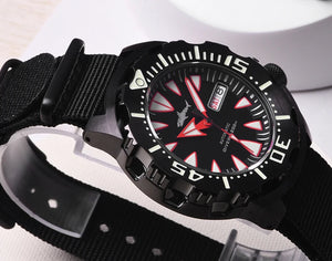 HEIMDALLR NH36 Monster Diver Automatic 200m Waterproof PVd Black AR Sapphire Luminous Men Watch Ghost Teeth Series
