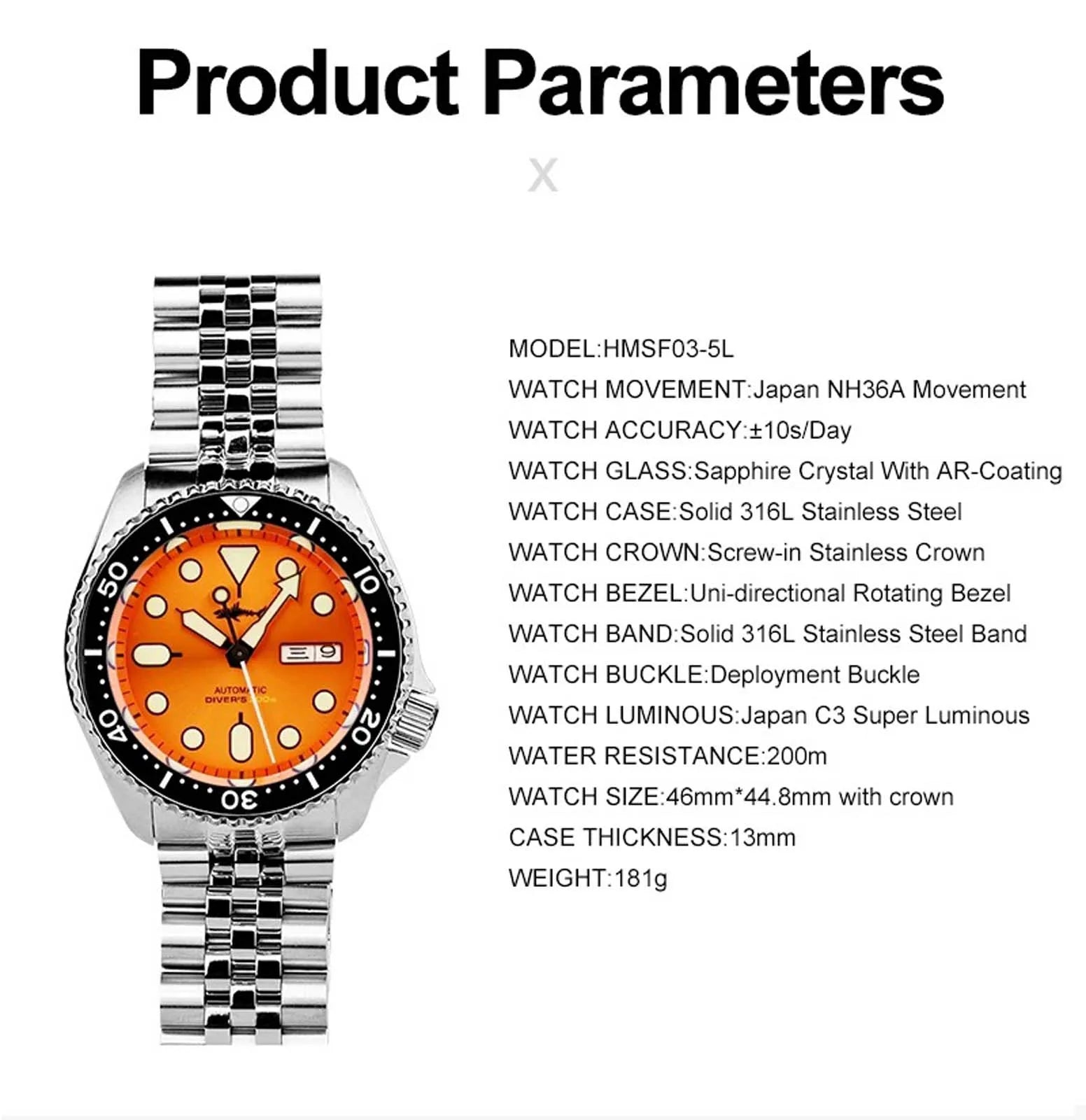 HEIMDALLR Skx007 Men Watch NH36 Movement Sharkey Ceramic Bezel 200M Waterproof Sapphire Automatic Mechanical Dive Watch for Men