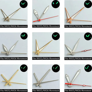 Upgrade your watch with the high-quality NH series 35 NH36 hands. These green luminous accessories are designed for N H35/ NH36 movements, providing accurate timekeeping in any light. Stand out from the crowd and enhance your watch with these sleek and reliable watch pointers.