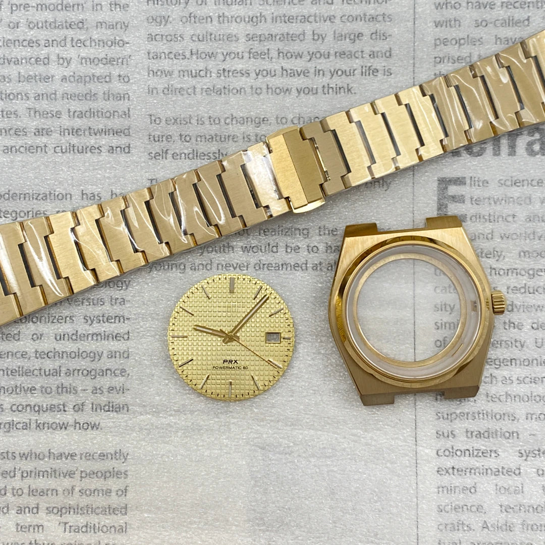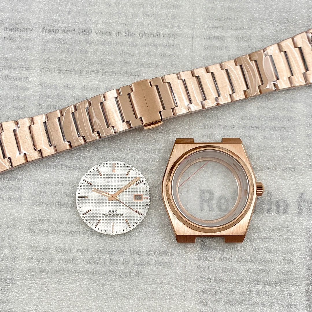 Gold / Rose Gold / PVD Black PRX case 40mm Automatic Modified Case Strap Set Fits Supe Player Prx NH35 NH36 Movement Sapphire Glass Penetrating