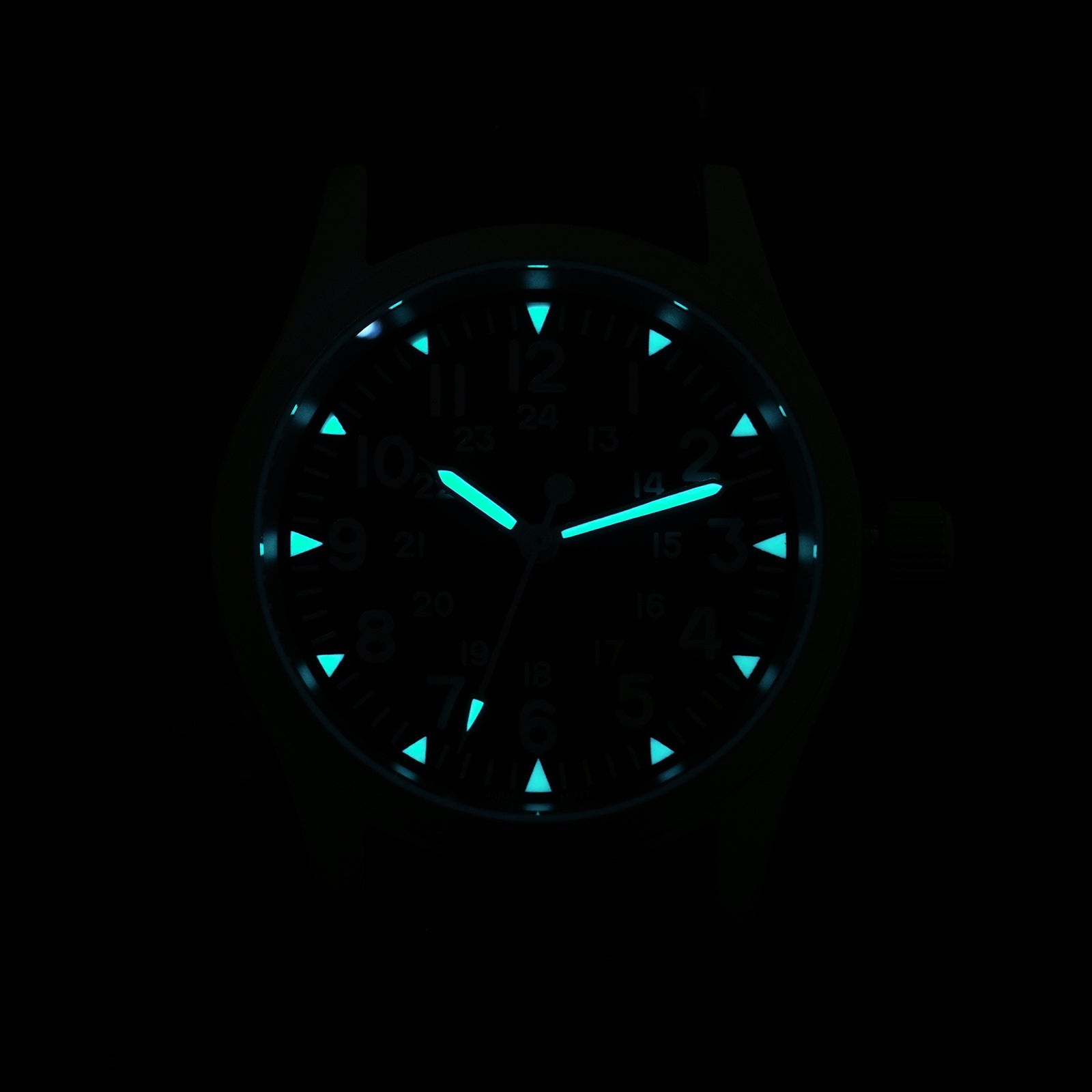 The Militado ML05 combines vintage military aesthetics with modern horological engineering. Powered by a reliable VH31/VH60 sweep hand movement, this 38mm timepiece features a robust 316L stainless steel case with optional black PVD coating for enhanced durability. The domed sapphire crystal with anti-reflective coating ensures crystal-clear visibility, while Super C3 green luminous hands guarantee readability in low-light conditions. Water-resistant to 100m, the screw-down crown provides secure operation for daily wear. At just 10.5mm thick with a 47.5mm lug-to-lug distance, it balances presence with wearability. Backed by a 2-year warranty and comprehensive return policy, this military-inspired watch delivers dependable performance and timeless design.