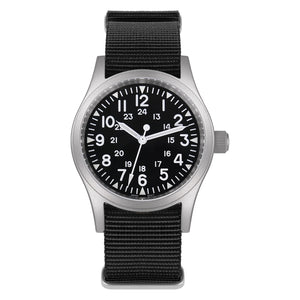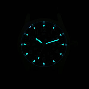 The Militado ML05 combines vintage military aesthetics with modern reliability. Powered by a smooth VH31/VH60 sweep hand quartz movement, this 38mm timepiece features a robust 316L stainless steel case with sand-blasted finish and PVD coating for enhanced durability. The domed sapphire crystal with anti-reflective coating ensures excellent visibility, while Super C3 green luminous hands guarantee readability in low-light conditions. A screw-down crown provides 100m water resistance, making it suitable for daily wear and water activities. At 10.5mm thick with a 47.5mm lug-to-lug distance, it sits comfortably on most wrists. Backed by a 2-year warranty and includes presentation box and warranty card.