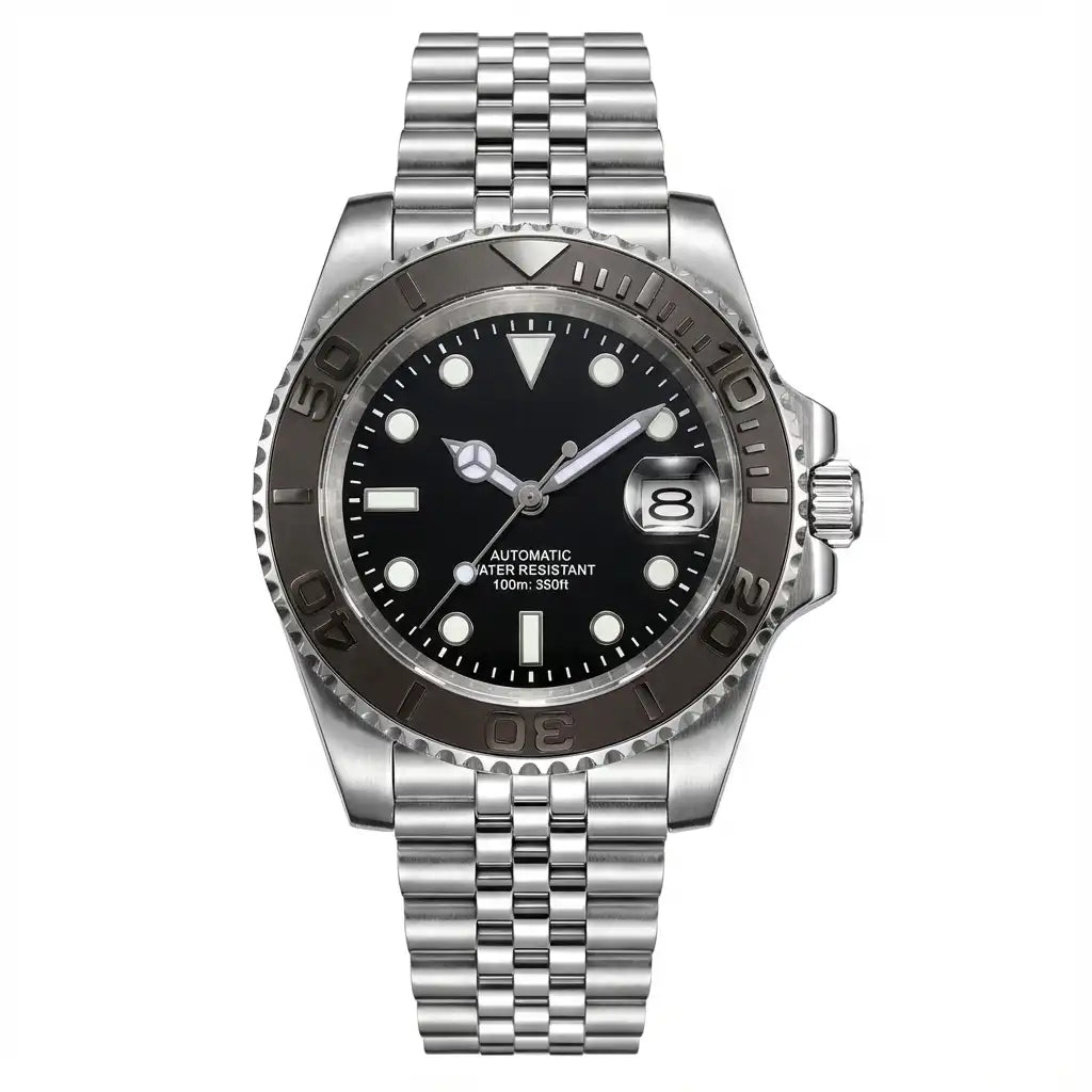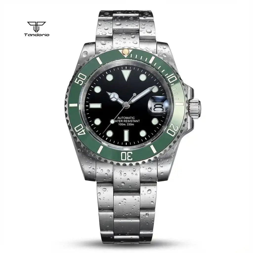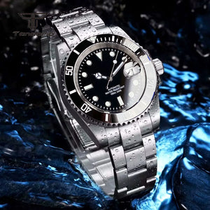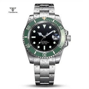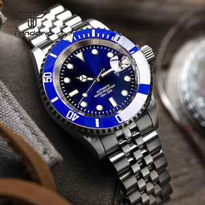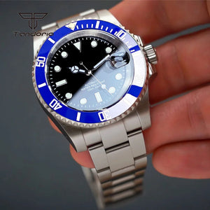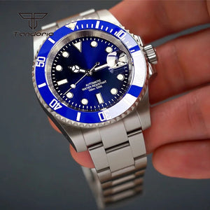 A professional-grade Submariner Mod dive watch designed with classic tool-watch DNA. Featuring a 40mm solid stainless steel case, a 120-click unidirectional bezel, and your choice of robust Miyota 8215 or smooth PT5000 automatic movement. Enhanced with a distinctive bubble-date sapphire crystal, a glide-lock clasp, and full luminous markings, the TD203M combines vintage aesthetics with modern performance and 200m water resistance.
