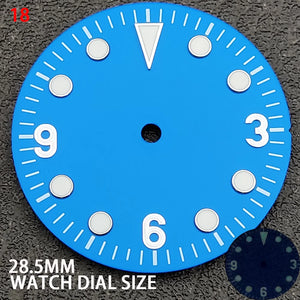 28.5mm Dial single/no calendar watch blue-green/green luminous dial hands fit for N H35/E2815/E2836 movement watch accessories