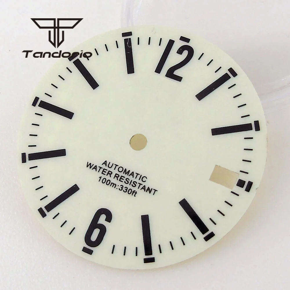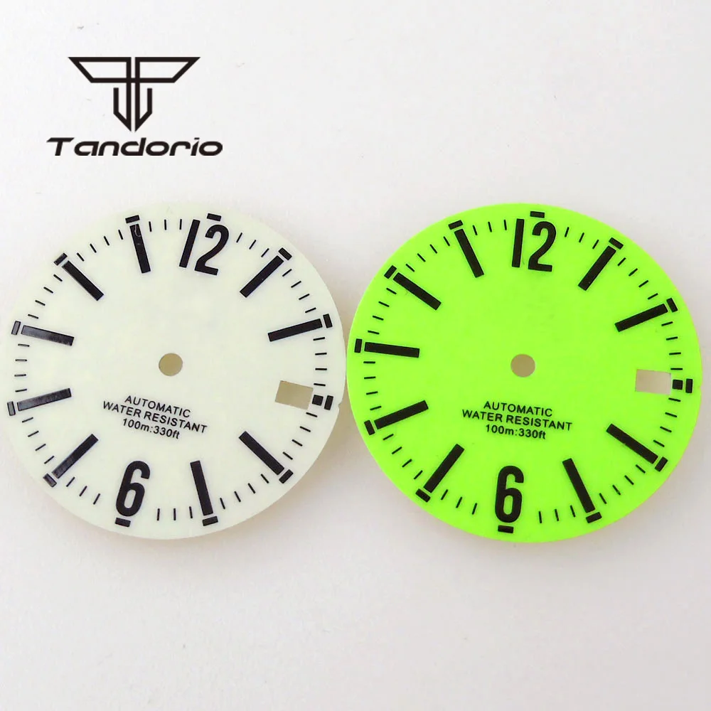 NH35 full lume dial 29mm Green/White Automatic Watch Dial Date Window Full Luminous Wristwatch Face Spare Parts Accessories