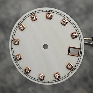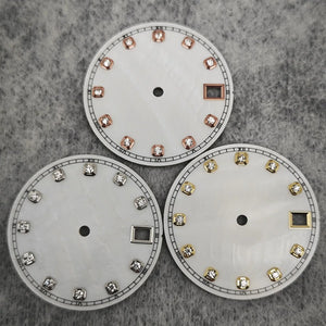NH35 Watch Dial Watch Hands 28.5mm Diamond Inlaid Shell of Pearl Pattern Surface Watch Accessories for NH35/NH36 Movement
