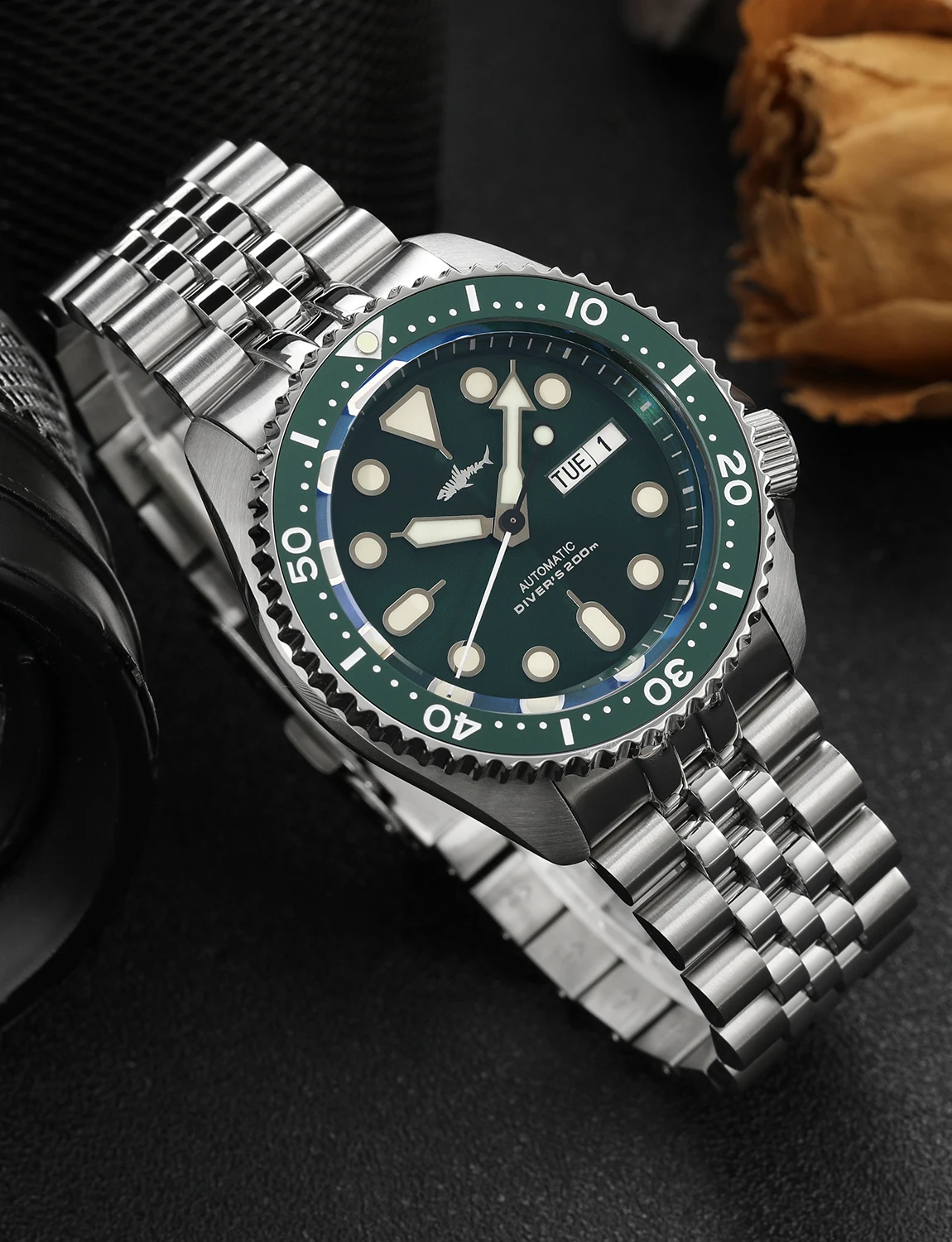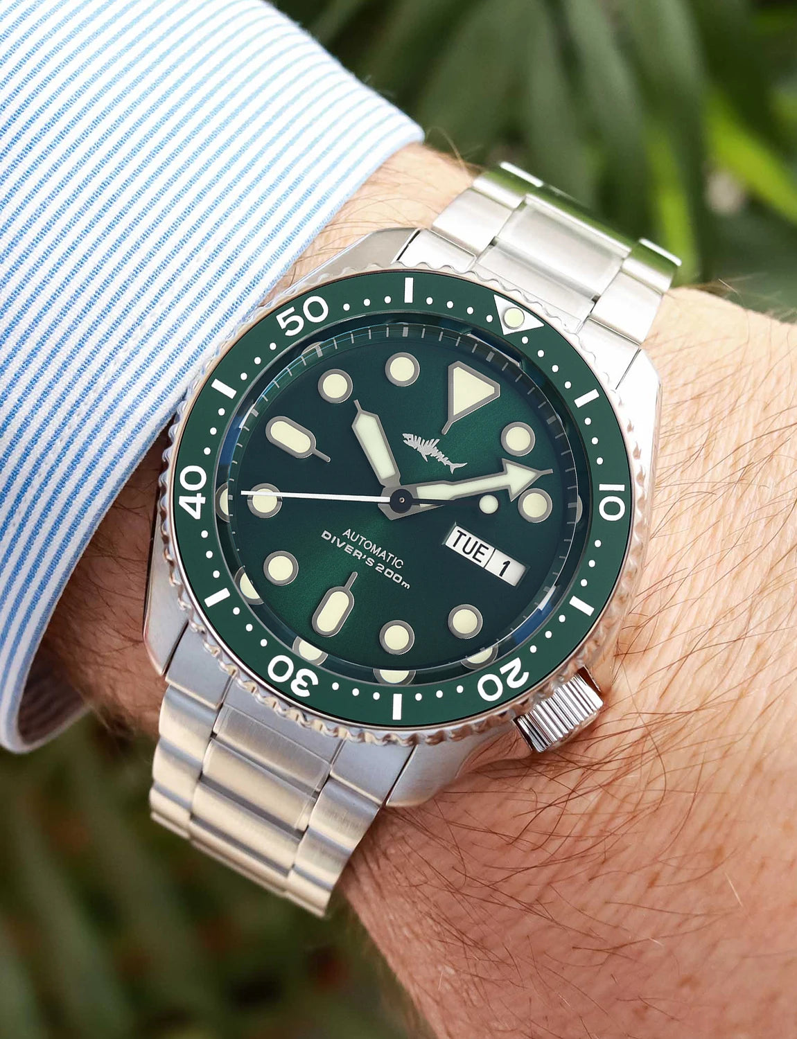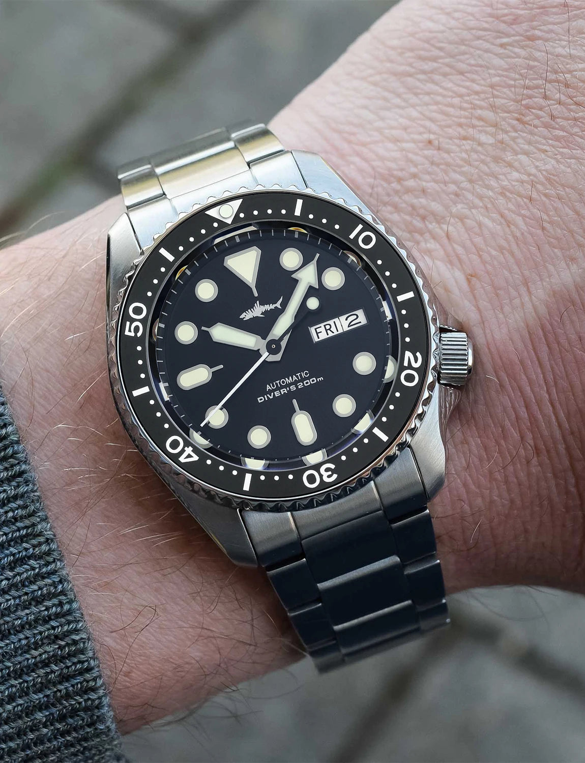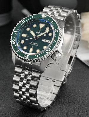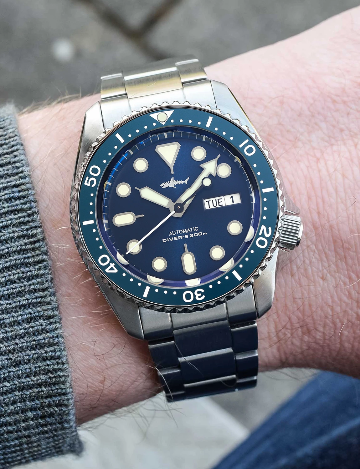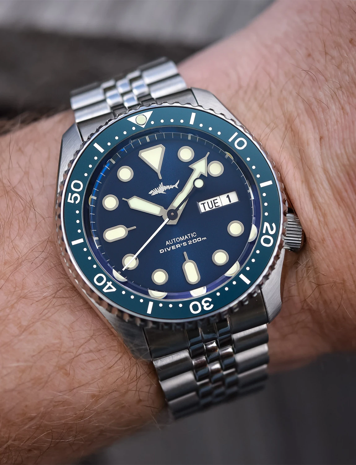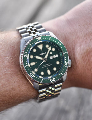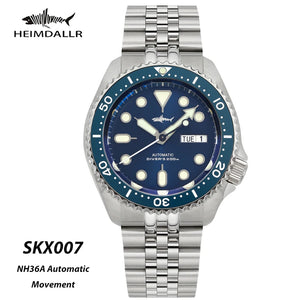 NH36 SKX007 Diver Watch 42mm Heimdallr 200M Waterproof Sapphire Ceramic Bezel C3 Luminous Built for serious diving and everyday wear, this 42mm diver features a robust NH36 automatic movement paired with a 200M water-resistant case. The sapphire crystal resists scratches while the ceramic bezel maintains its luster through years of use. C3 luminous hands and indices ensure visibility in low-light conditions, whether underwater or in dimly lit environments. The SKX007-inspired design combines classic proportions with modern materials, delivering a reliable tool watch that performs as well as it looks.