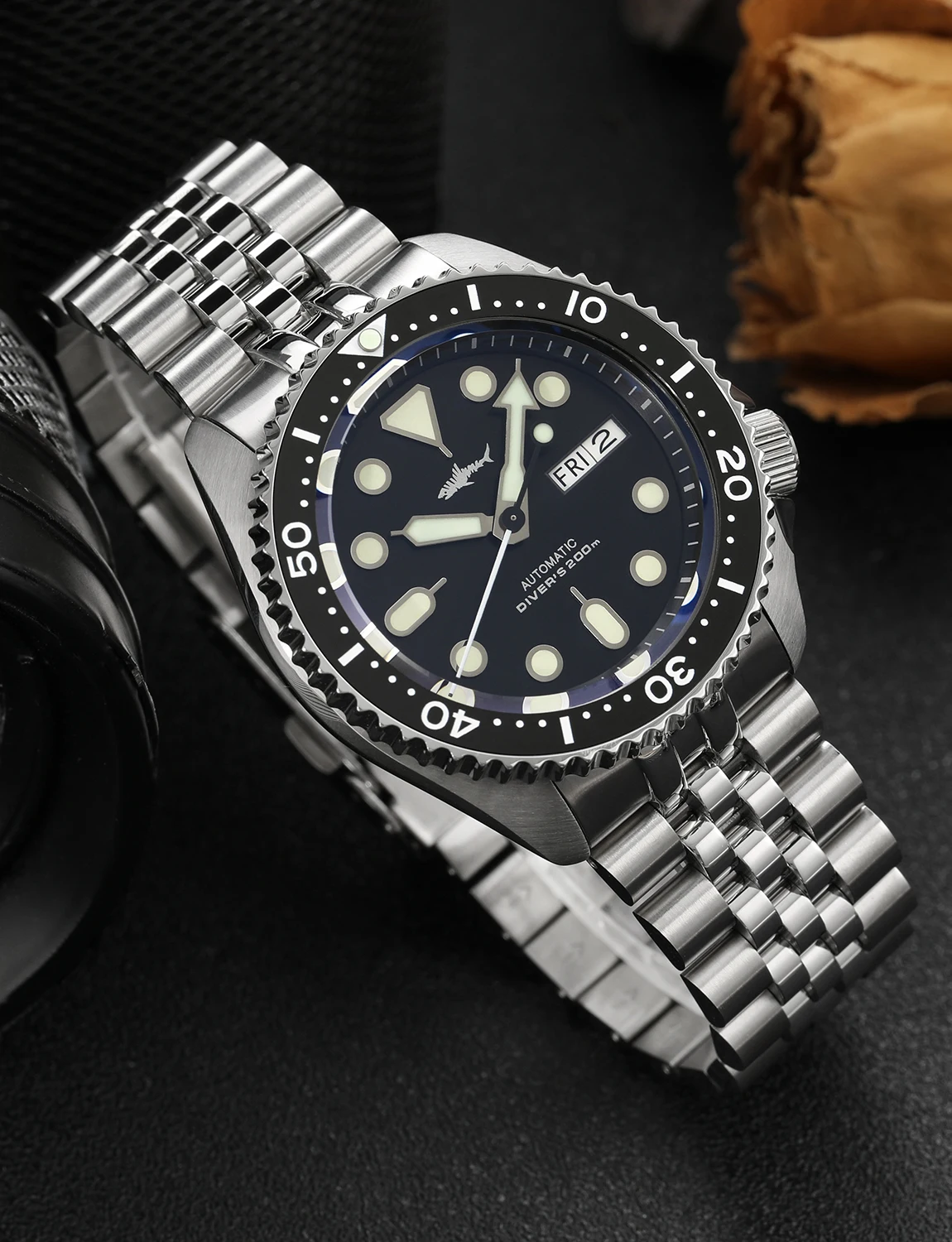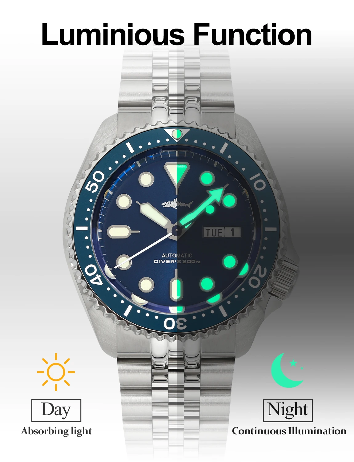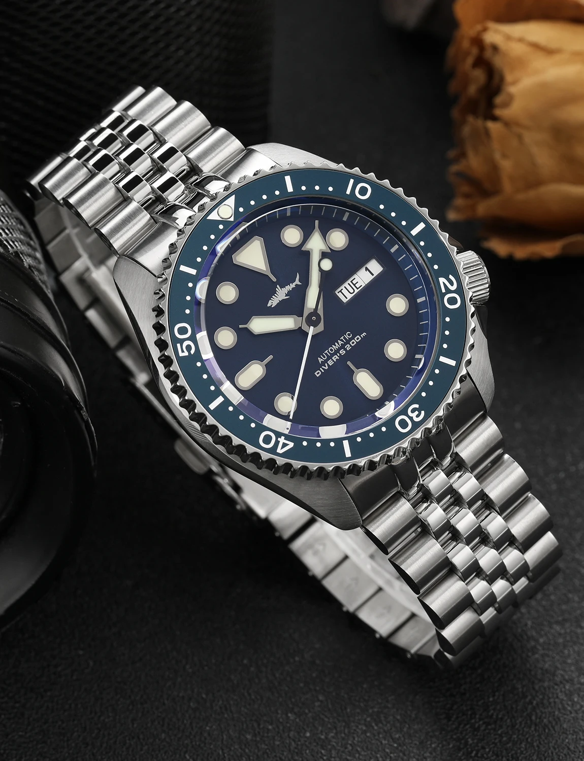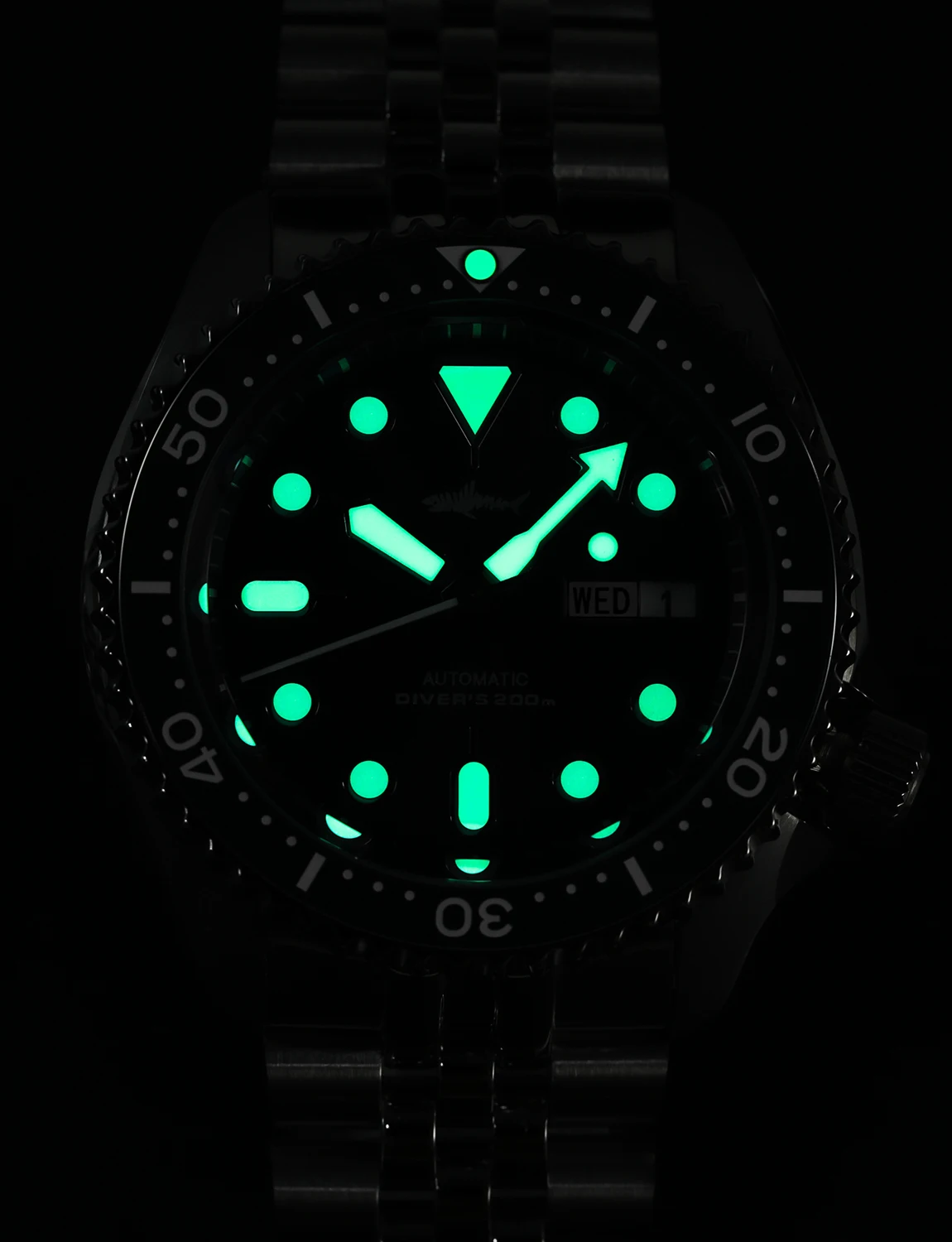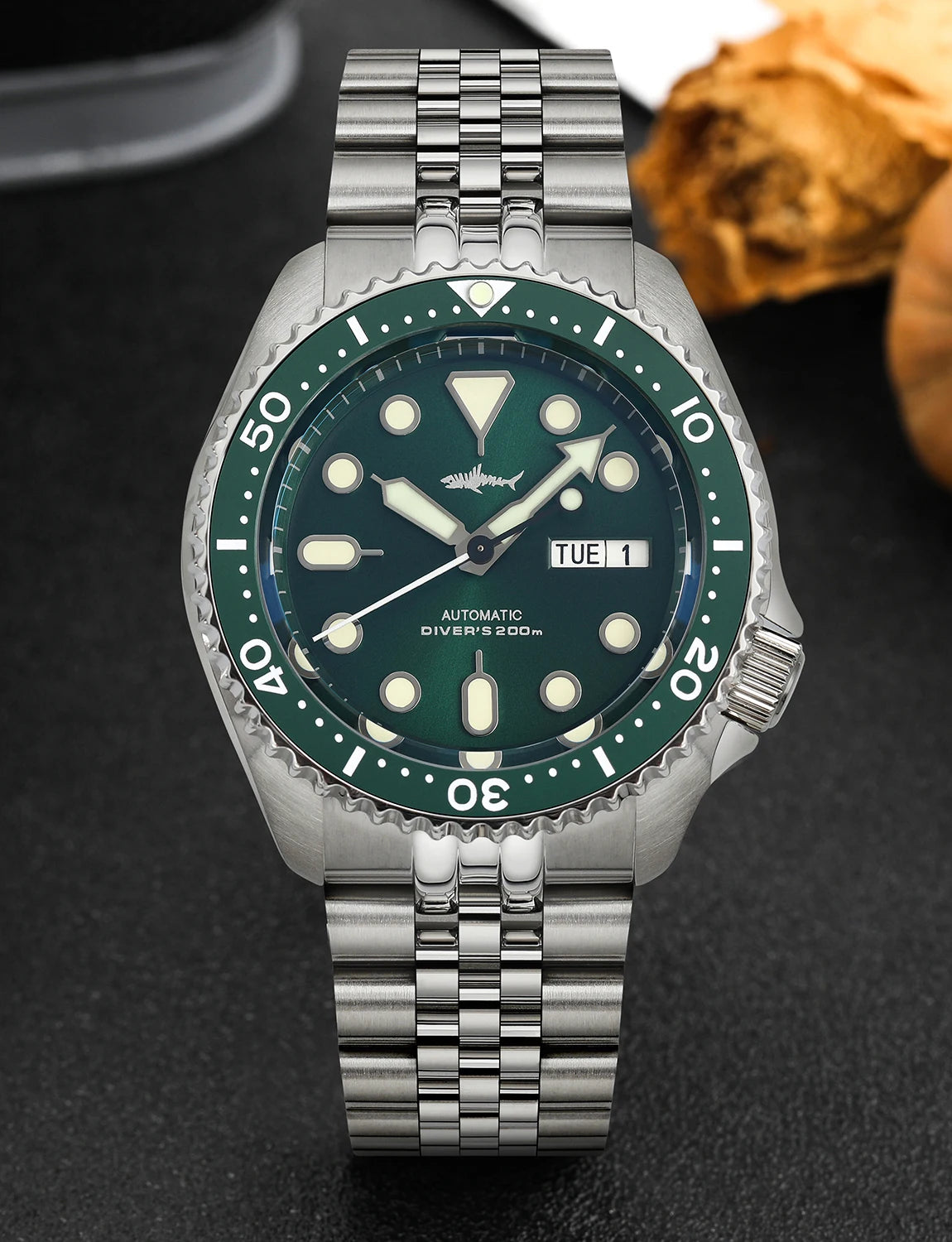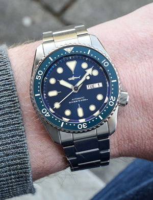 NH36 SKX007 Diver Watch 42mm Heimdallr 200M Waterproof Sapphire Ceramic Bezel C3 Luminous Built for serious diving and everyday wear, this 42mm diver features a robust NH36 automatic movement paired with a 200M water-resistant case. The sapphire crystal resists scratches while the ceramic bezel maintains its luster through years of use. C3 luminous hands and indices ensure visibility in low-light conditions, whether underwater or in dimly lit environments. The SKX007-inspired design combines classic proportions with modern materials, delivering a reliable tool watch that performs as well as it looks.