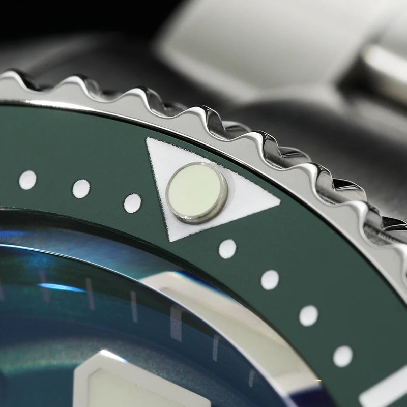 Bezel Insert: Ceramic Bezel Insert with luminous dot (green glowing)