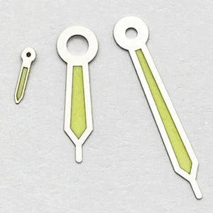Upgrade your watch's appearance with these Nipple end ETA6497 Watch Hands. Available in Silver, Blue, Gold, and RoseGold with Green Luminous for easy visibility. Compatible with ETA 6497, 6498, ST3600, and 3620 movements. Enhance your timepiece with this high-quality accessory part.