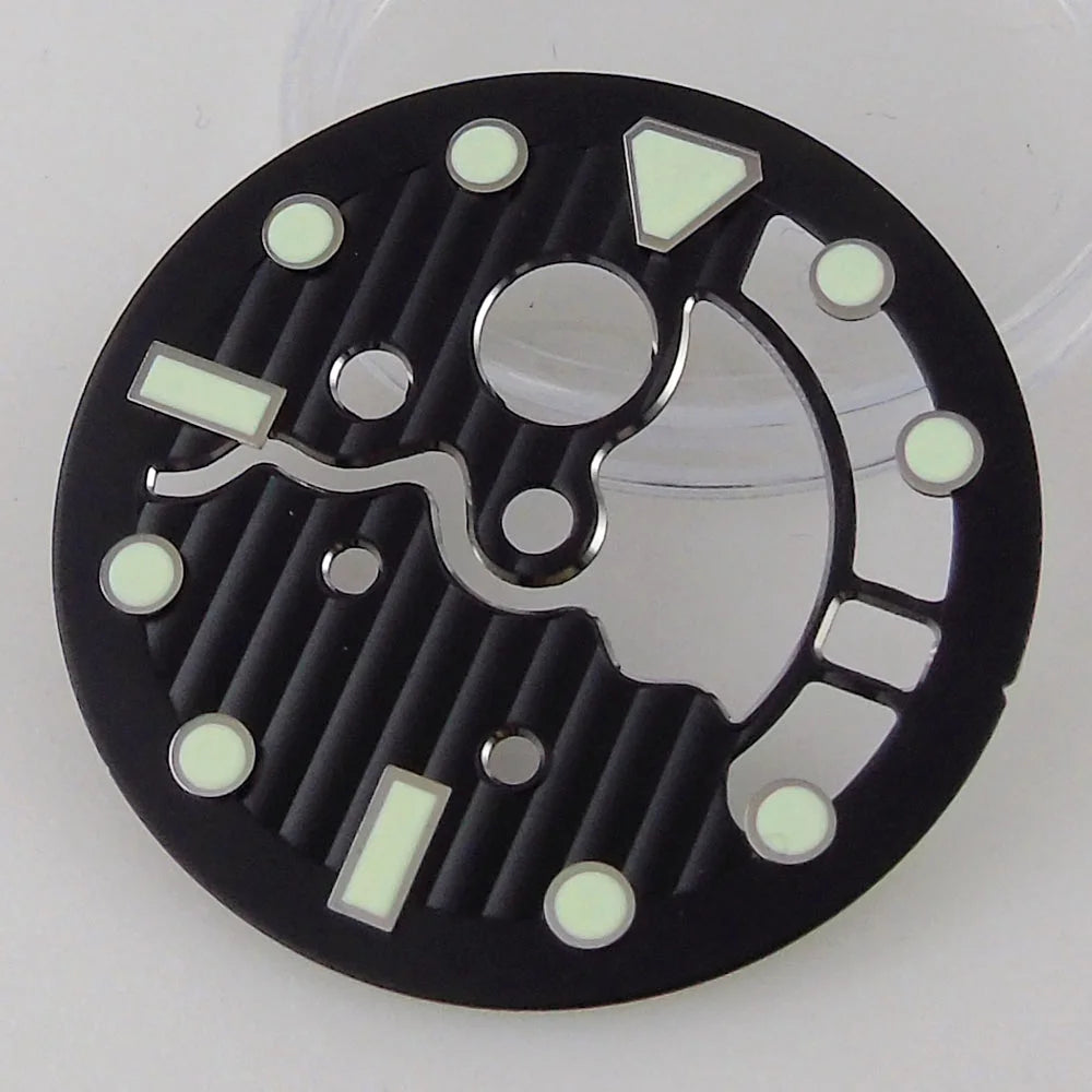 28.5mm Sunray Watch Dial Stripe Nails Green Luminous Font Modified Watch Accessories Suitable for NH35/8215/2836 Movement