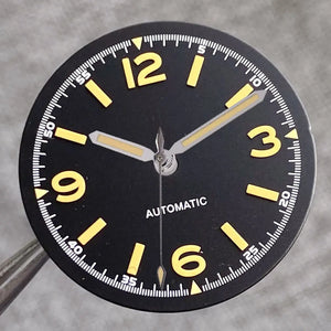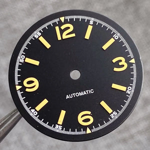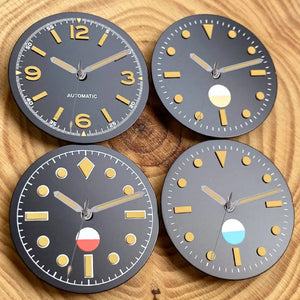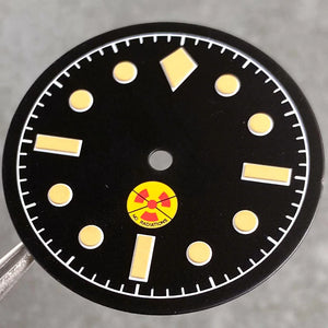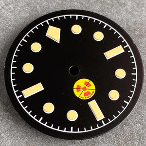 Enhance your dive watch with Non-Radiation 50-FATHOMS Watch Dial Parts. Measuring 29mm, this dial is designed for use with NH35 PT5000 movements and features green luminous case parts for easy visibility in low light conditions. The sterile nologo hand set adds a sleek and professional touch to your timepiece.