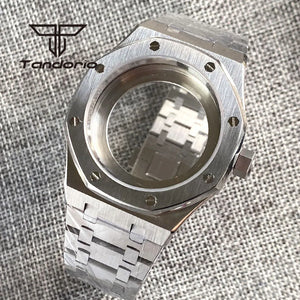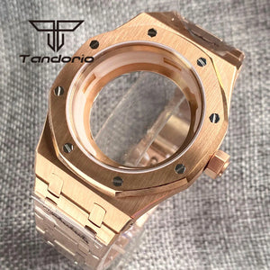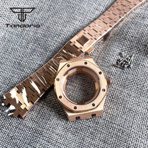 Elevate your watch build with this premium 42mm octagon case crafted from PVD-coated stainless steel in striking black and rose gold finishes. The brushed surface delivers a refined aesthetic, while the distinctive octagonal design commands attention on the wrist. Sapphire crystal provides exceptional clarity and scratch resistance, and the matching octagon bracelet ensures cohesive styling. Compatible with NH35 and NH36 automatic movements, this case features a transparent exhibition caseback to showcase your mechanical heart. Perfect for custom watch enthusiasts seeking professional-grade components with distinctive character.