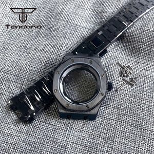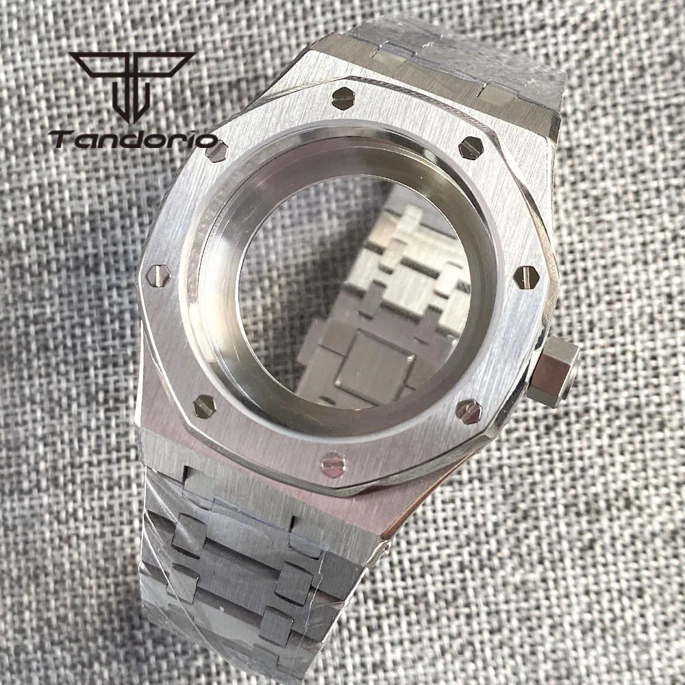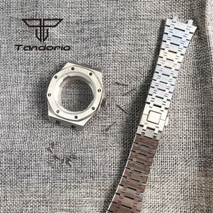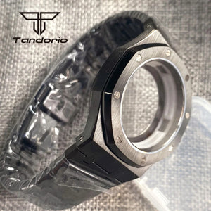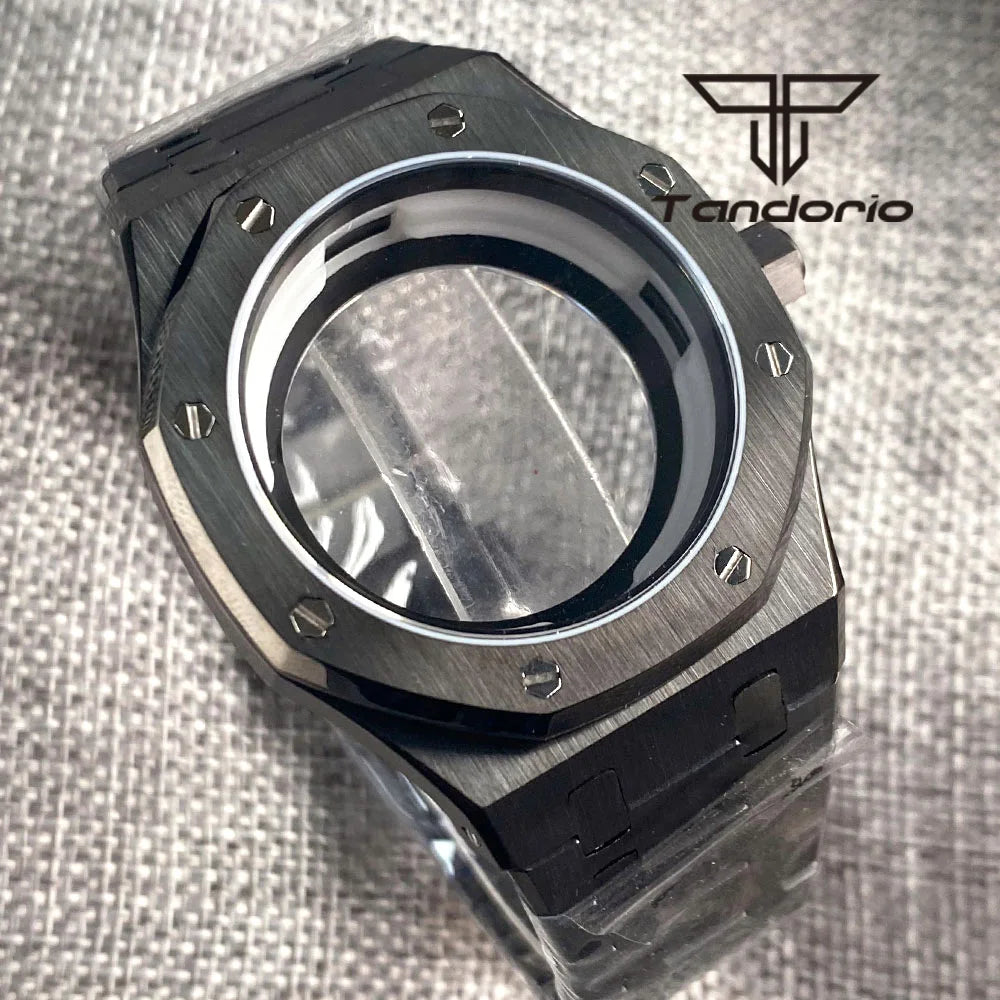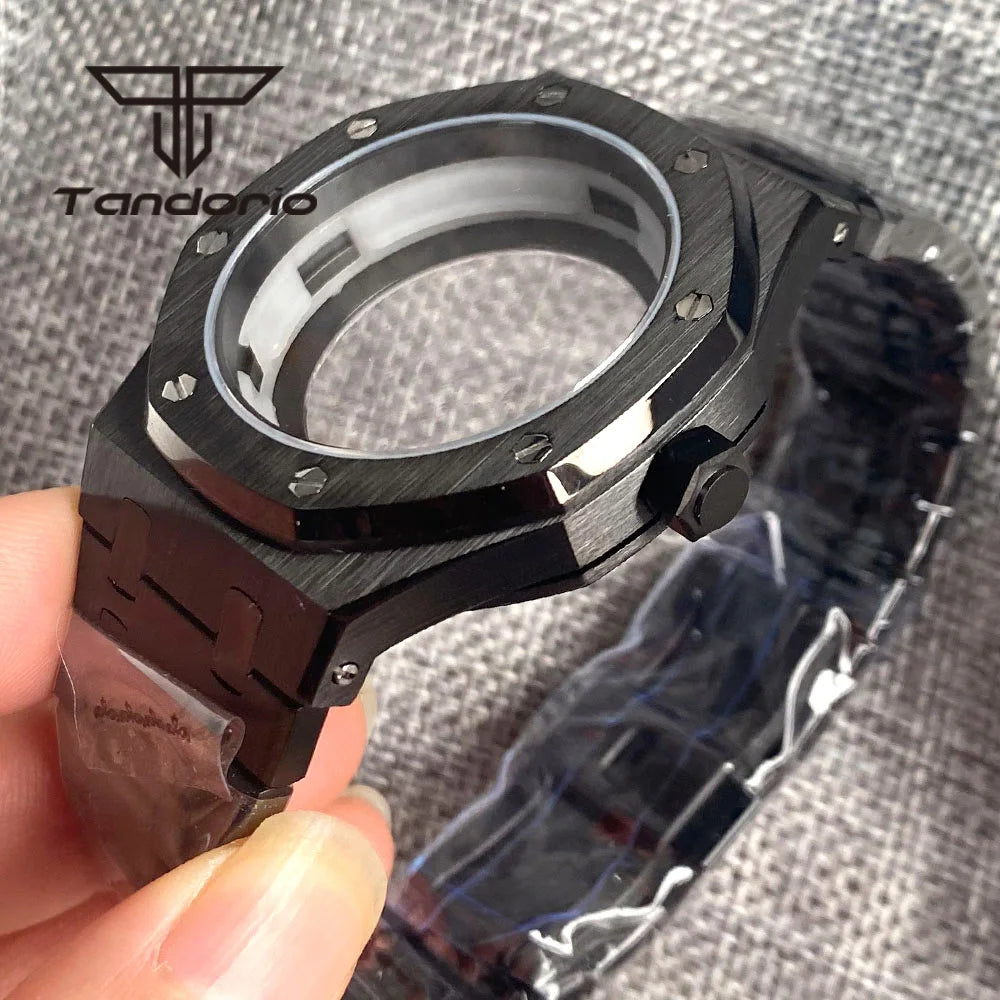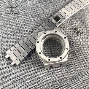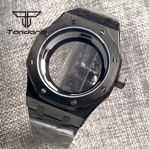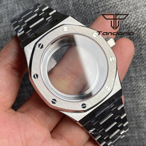 Octagon Case PVD Black/Rose Gold Stainless Steel 42mm Royal Oak Style Brushed Watch Case Bracelet Octagon Design Sapphire Glass Fit NH35 NH36 Movement Glass Back
