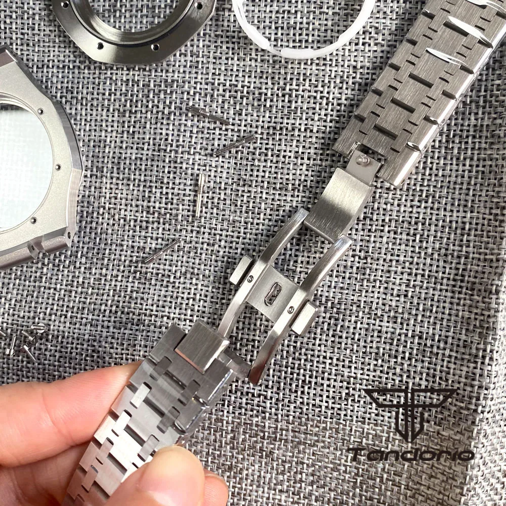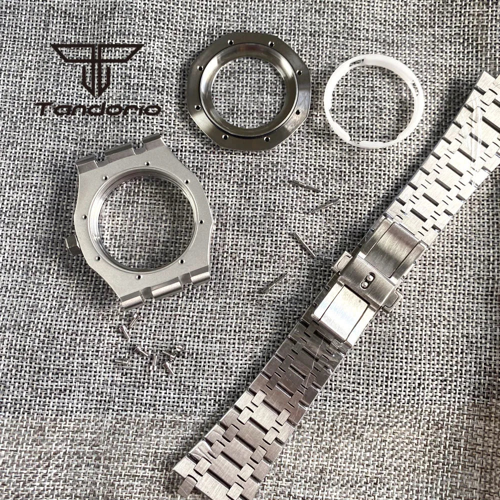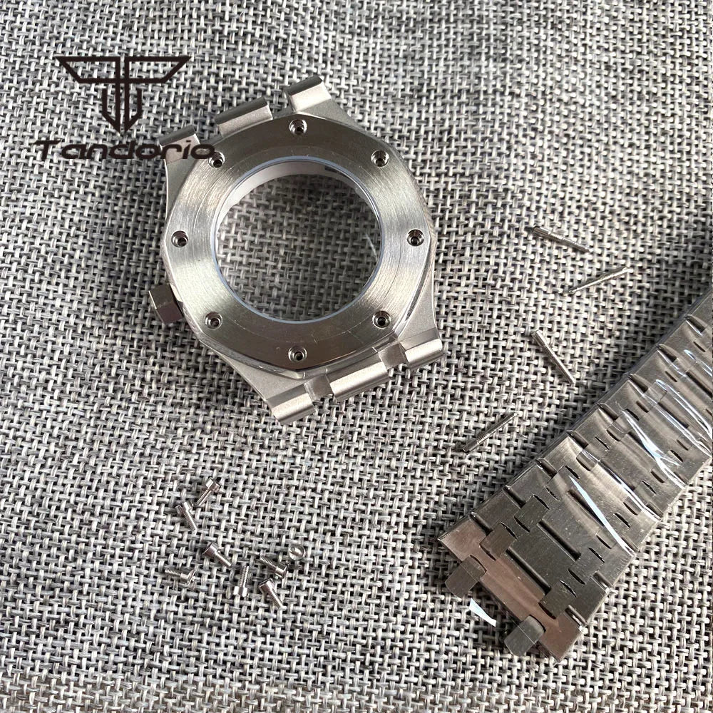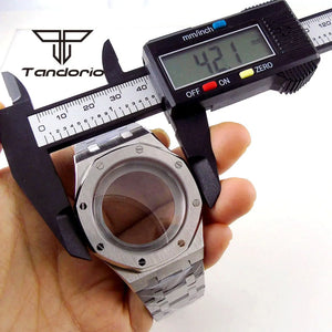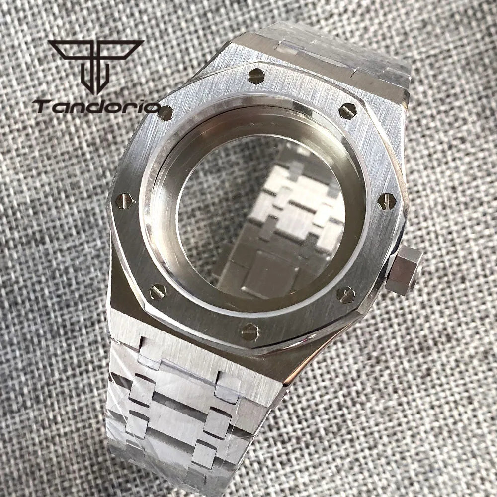 Octagon Case PVD Black/Rose Gold Stainless Steel 42mm Royal Oak Style Brushed Watch Case Bracelet Octagon Design Sapphire Glass Fit NH35 NH36 Movement Glass Back