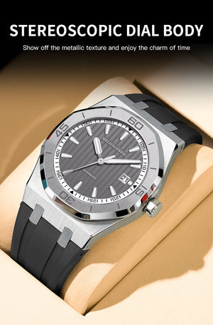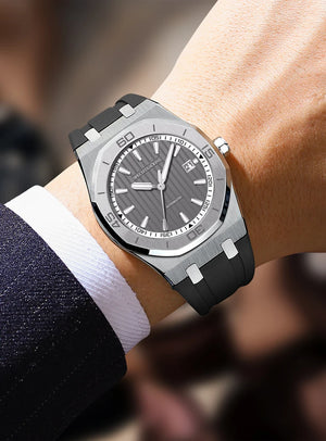 A modern integrated sports watch inspired by classic 1970s luxury designs. Featuring a sharp octagon stainless steel case, reliable Japan Miyota 8215 automatic movement, and sapphire crystal, this watch delivers a slim, sporty profile with strong wrist presence. Best suited for 16–17cm+ wrists, it wears balanced and comfortable for daily use.