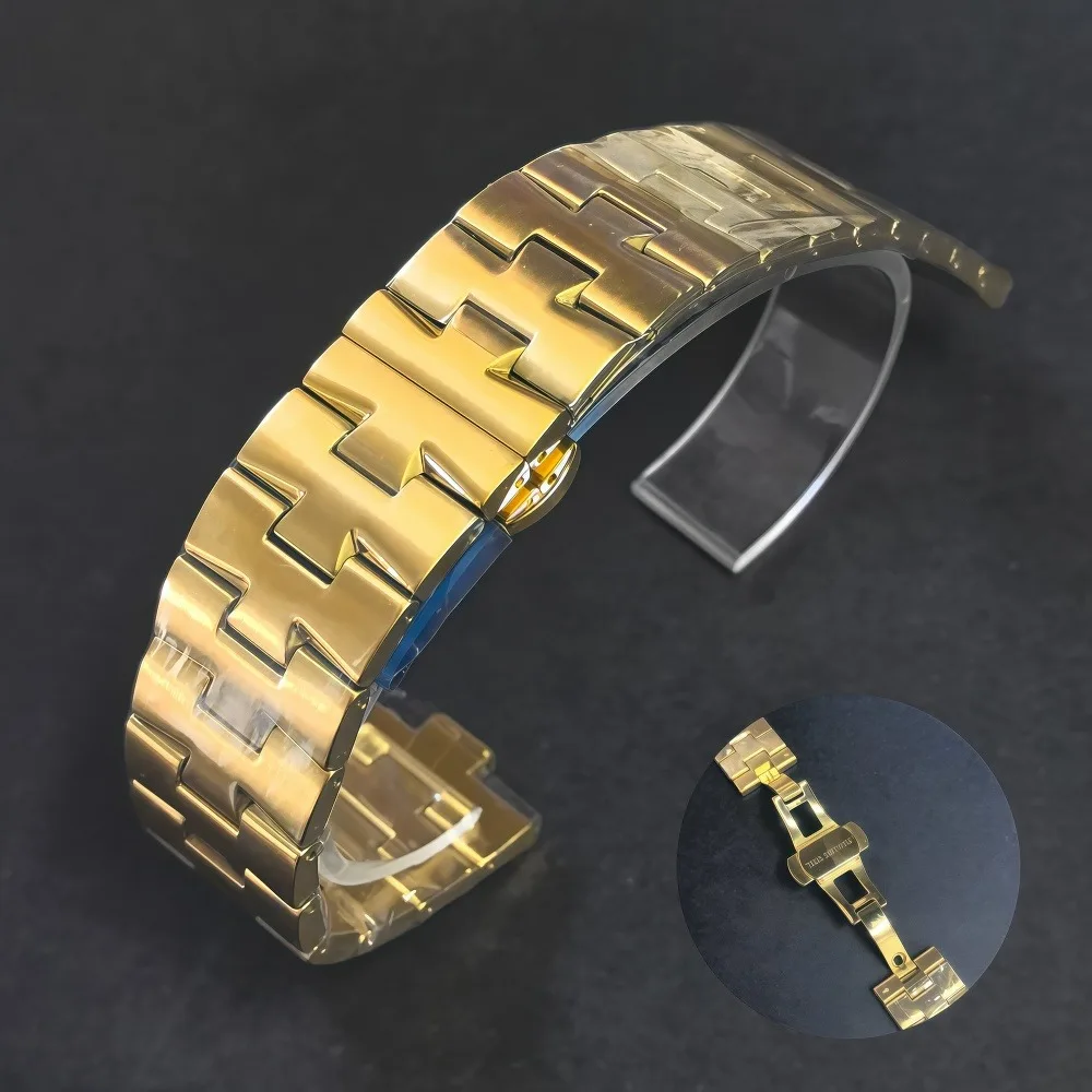 New Curved End Stainless Steel Watch Bracelet Folding Clasp Fit for Tandorio 62mas Wristwatch