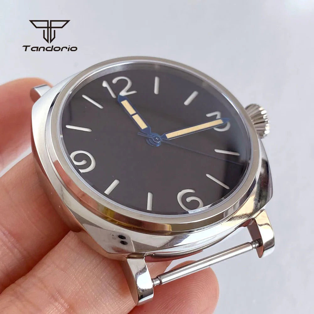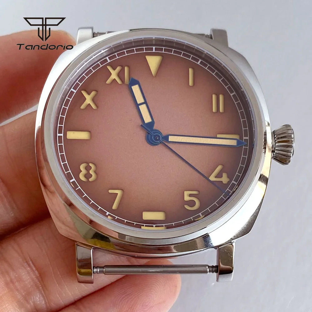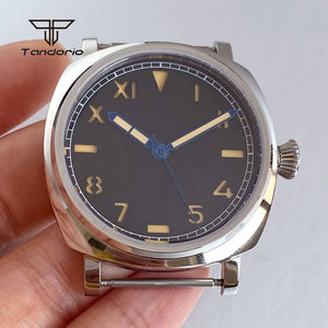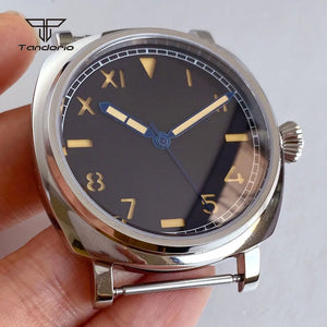 A premium, polished square watch case inspired by the classic cushion-shaped design of vintage Radiomir-style watches. This 42mm 316L stainless steel case offers exceptional versatility, engineered to be compatible with over a dozen popular automatic movements. Featuring a sapphire crystal, 200m water resistance, and a broad dial fitting range, it is the ultimate foundation for creating a sophisticated, custom-built dive or dress watch.