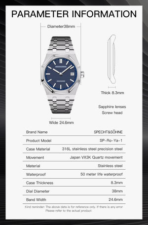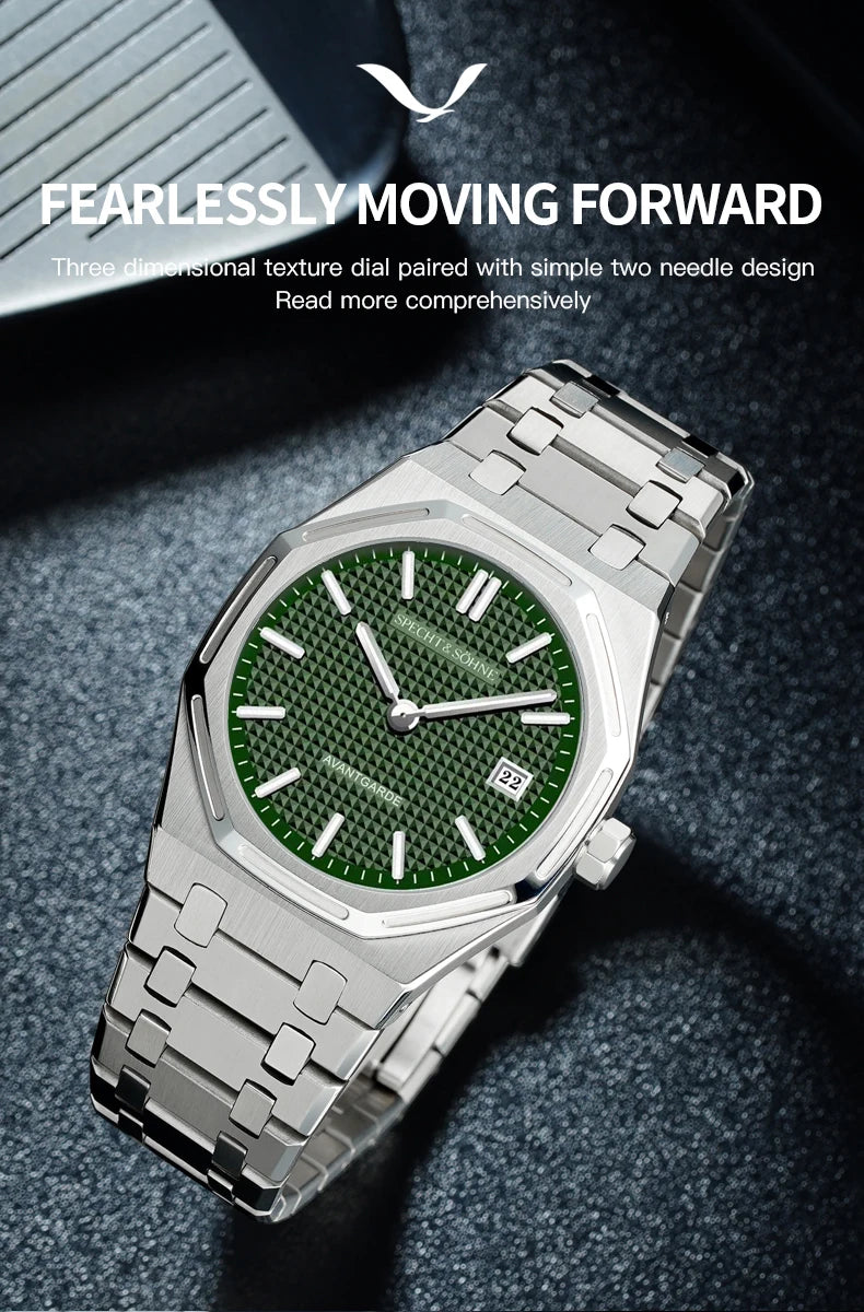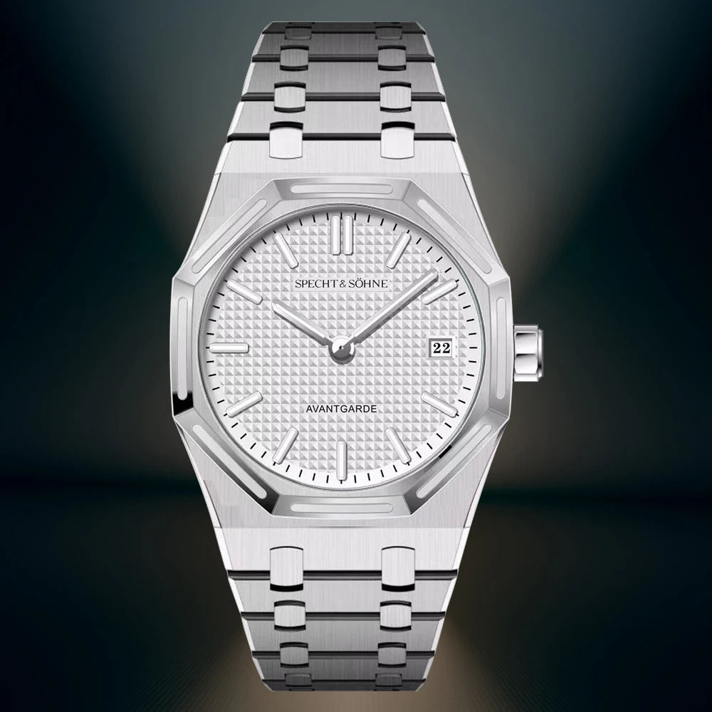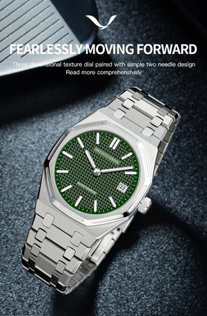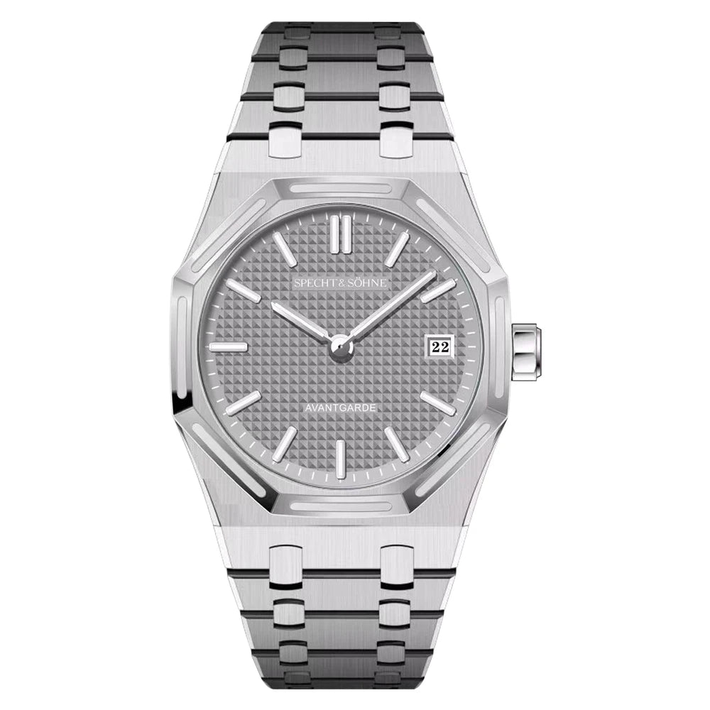 Luxury sports quartz watch inspired by the iconic PRC 100 octagonal design. Powered by a reliable Japan VX3K quartz movement, this ultra-thin 316L stainless steel watch features a sharp octagon case, sapphire crystal, and luminous dial and hands. With a sleek 8.3mm case thickness and comfortable integrated steel bracelet, it delivers refined elegance for everyday wear. Rated 50M water resistance, suitable for daily use and light water exposure.