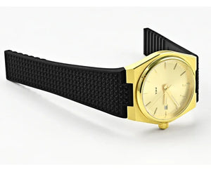 The PRX watch band Quick Release, compatible with 11mm and 12mm lug widths (T137.407/T137.410), features durable Super Player Fluoro rubber (FKM) for enhanced resistance to heat, chemicals, and wear. Designed for easy installation and removal, this strap offers both comfort and longevity, making it an ideal choice for professionals seeking reliable performance and a sleek, functional upgrade to their timepiece.