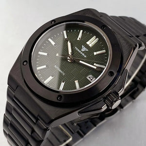 The Tandorio TD331P combines professional-grade engineering with accessible luxury. This automatic timepiece features a robust PVD black case that resists scratches and corrosion, paired with a scratch-resistant sapphire crystal for uncompromised clarity. The reliable NH35 movement delivers consistent timekeeping, while 100m water resistance suits daily wear and recreational water activities. The engineer-inspired design balances form and function, making it equally at home in the boardroom or on the wrist during weekend adventures. A sophisticated choice for those who demand both durability and precision.