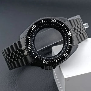 Professional-grade black SKX007 case with durable PVD coating, crafted from solid 316L stainless steel for serious Seiko mod builds. Designed to fit NH35 / NH36 movements and 28.5mm dials, this 42mm SKX-style case features a scratch-resistant plane sapphire crystal, screw-down crown, and full mod compatibility. Complete accessories included, perfect for custom diver and tool-watch projects.