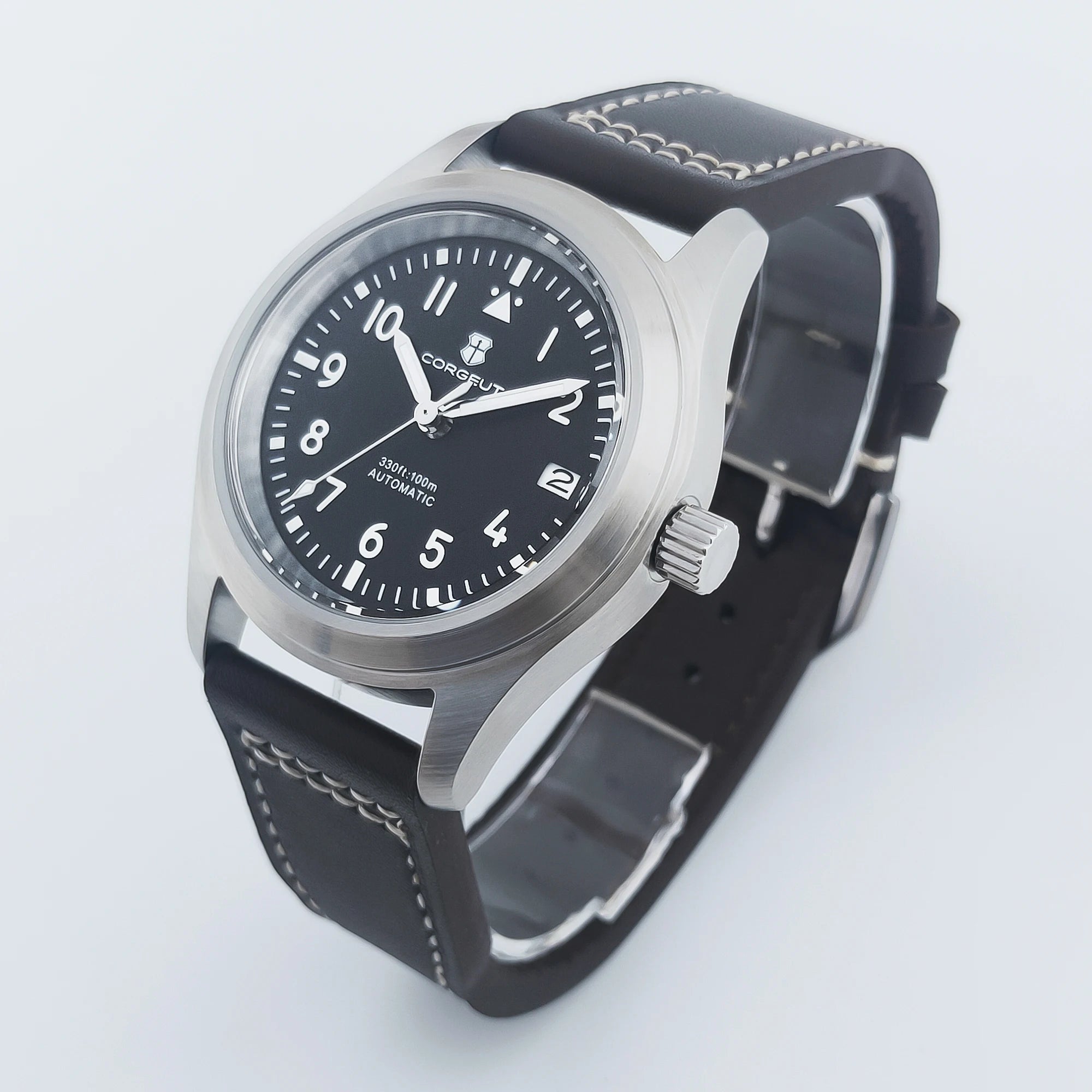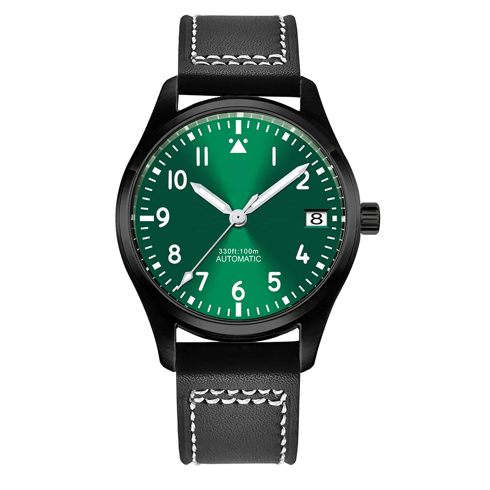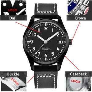 PVD Pilot Watch Sterile for Custom logo 39MM Sapphire 10Bar NH35 automatic glass back