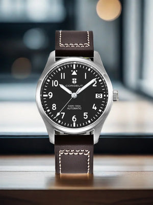 Discover the Sterile pvd pilot Wristwatch, a stylish and functional timepiece designed for both fashion and durability. This watch features an Seiko NH35 automatic self-wind movement with a 3-pin design that includes a date function. The 39mm stainless steel case, with a thickness of 13mm, is crafted from high-quality 316L fine steel. The dial features a combination of analog and digital displays, with luminous hands and markers for enhanced visibility in low light. The sapphire crystal glass ensures superior clarity and scratch resistance. With a 10Bar (100m) waterproof rating, this watch is suitable for daily use, handwashing, and swimming.