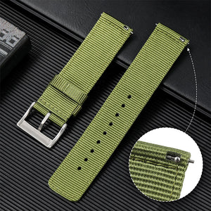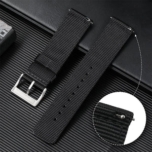 Leather Accented Canvas Nylon Watch Band 20mm/22mm