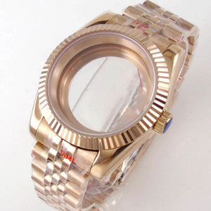 Rose Gold Fulted Watch Case Luxury 36mm/39mm Sapphire watch case Two Tone case 10BARS fit NH35 NH36 NH34 ETA2824 2836 Miyota8215 PT5000 DG2813 3804 movement