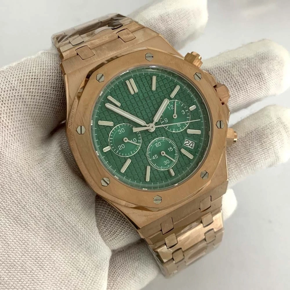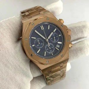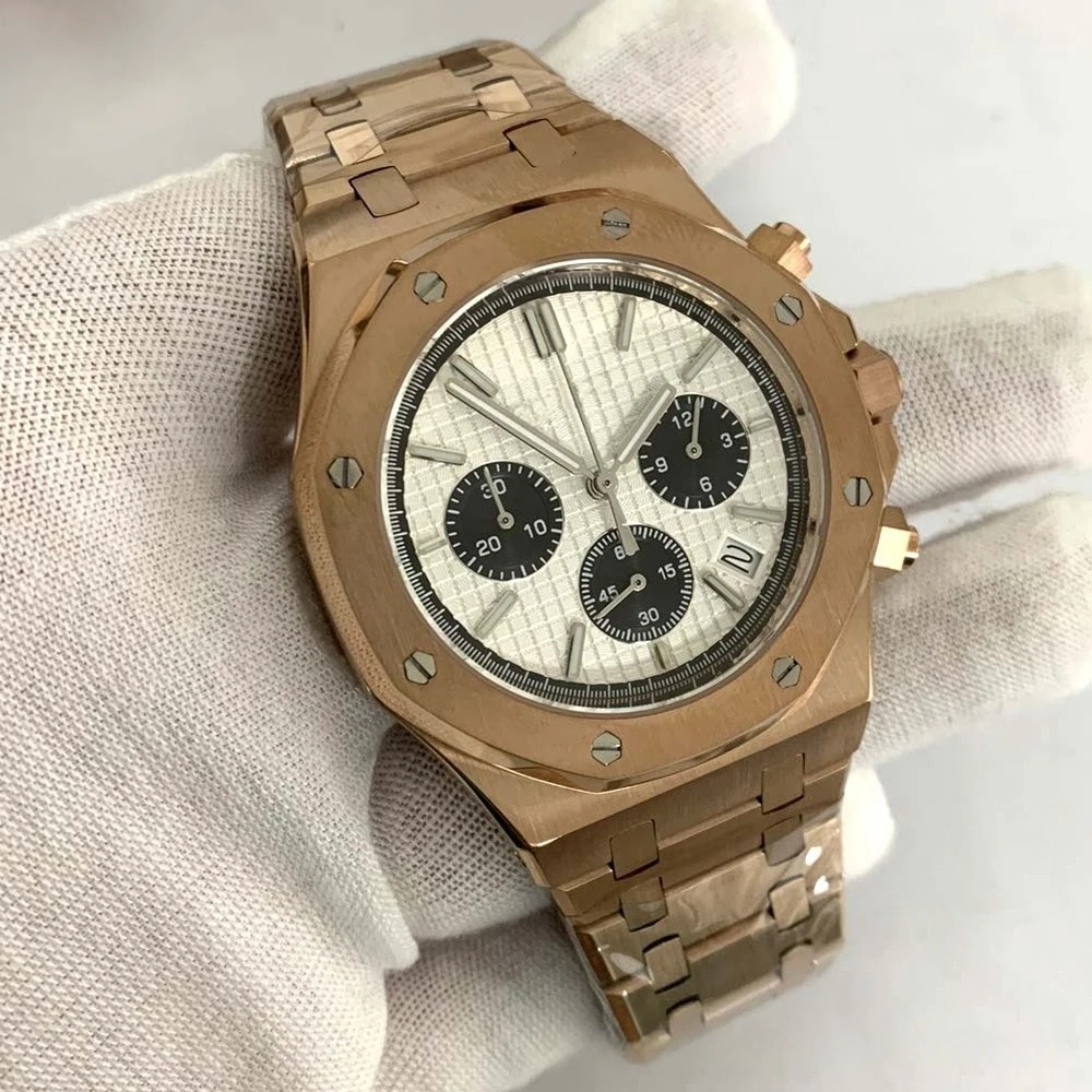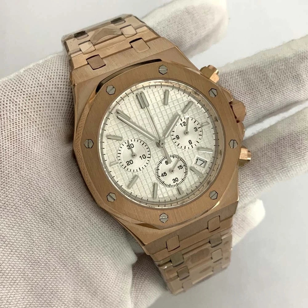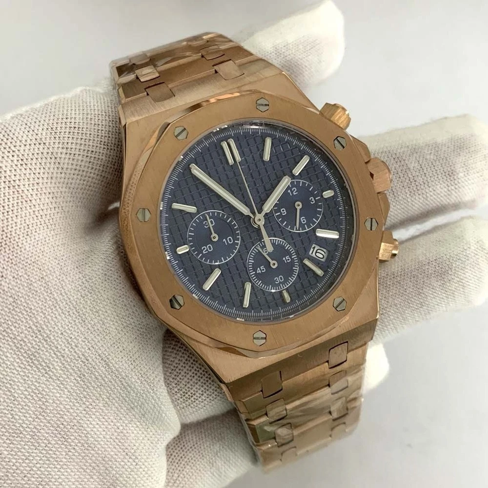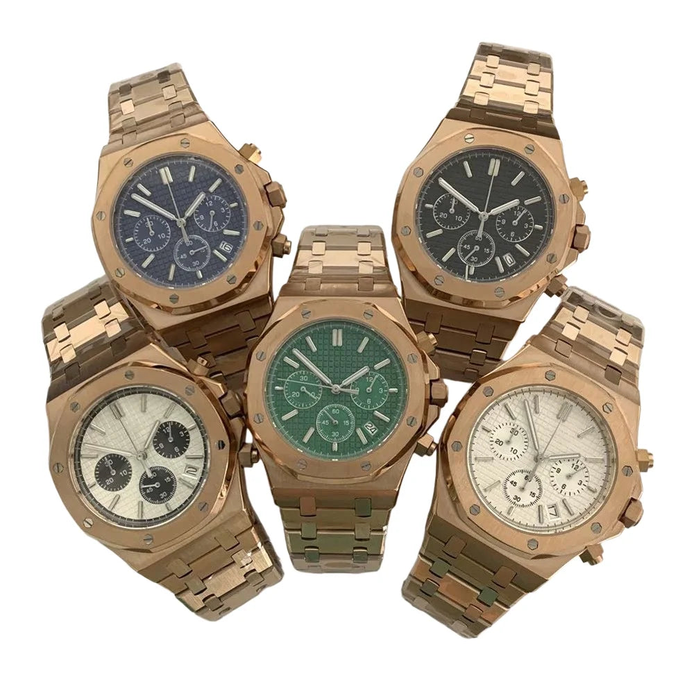 Rose Gold Quartz Royal Oak Octagon Watch Customized LOGO Chronograph 41mm Japanese VK63 Movement Sapphire 3ATM