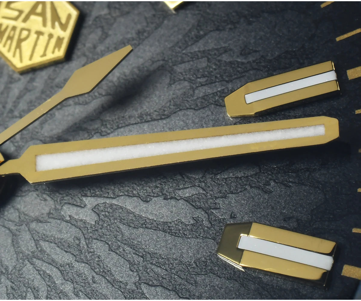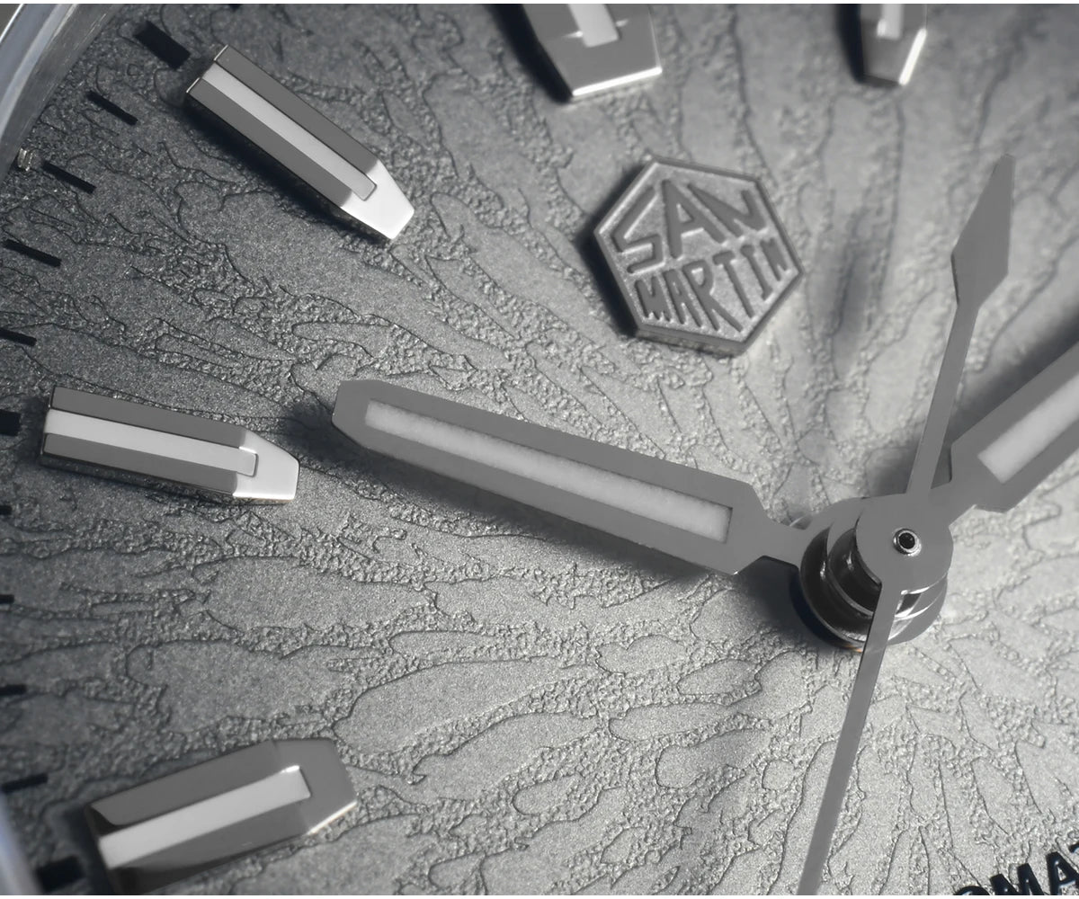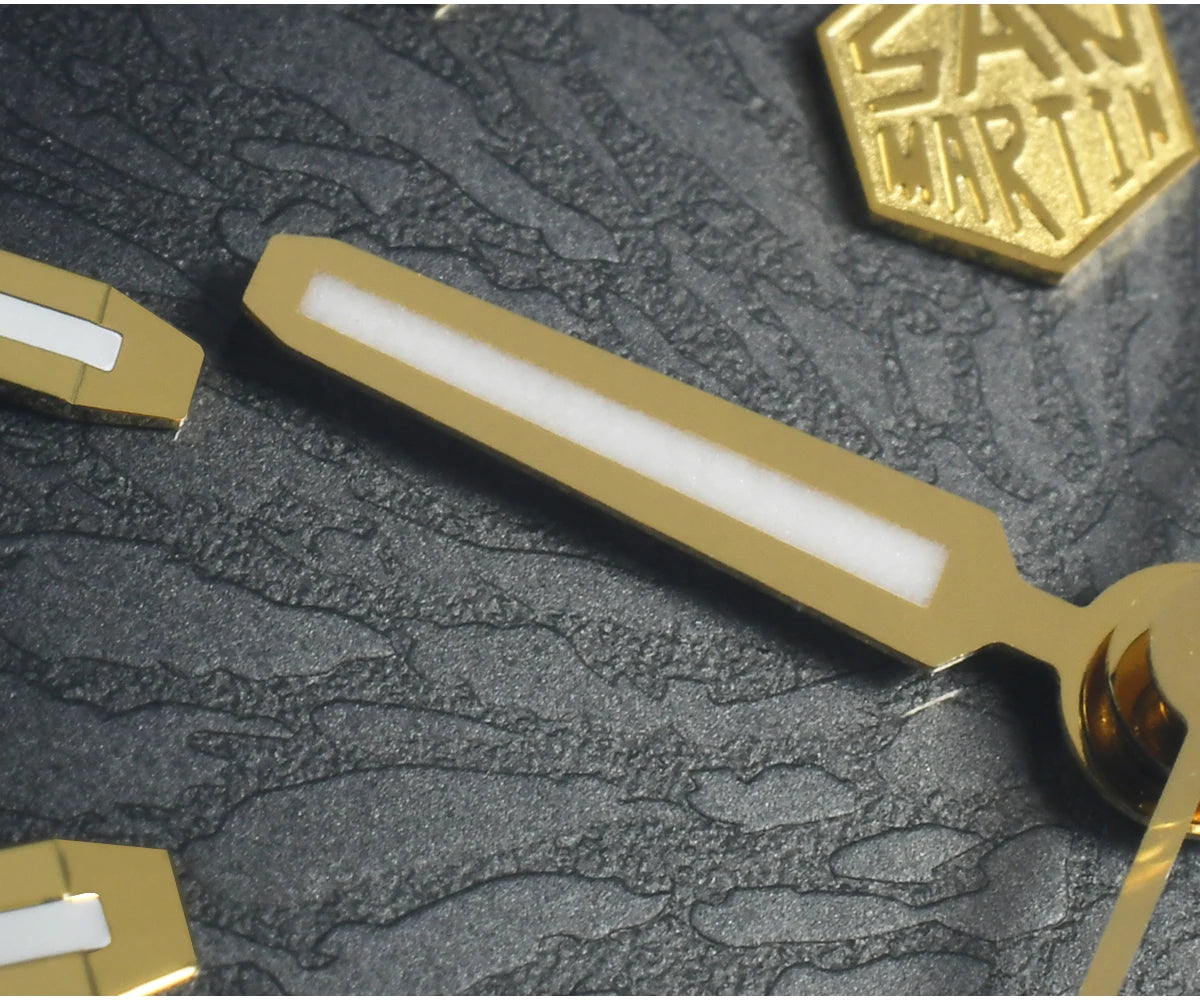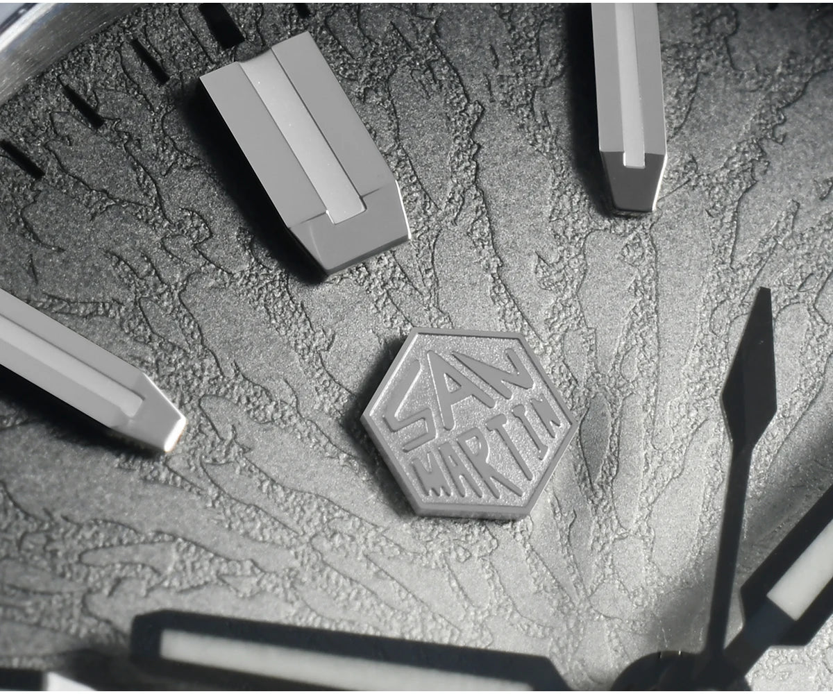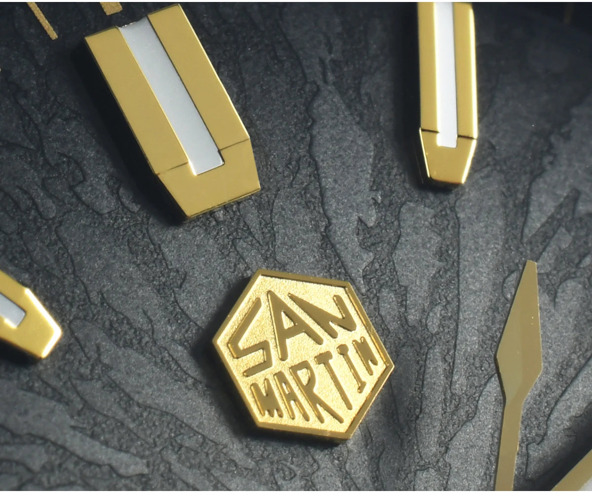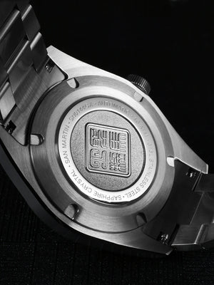 Case Back: Screw-down Case Back, Engraved with Chinese stamp "Made in San Martin", inspired by the stamp on the bottom of Chinese porcelain "JianZhan".