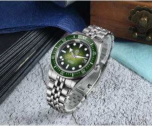 Enamel Sunburst Green Gradient Dial, With Green Ceramic Bezel Insert