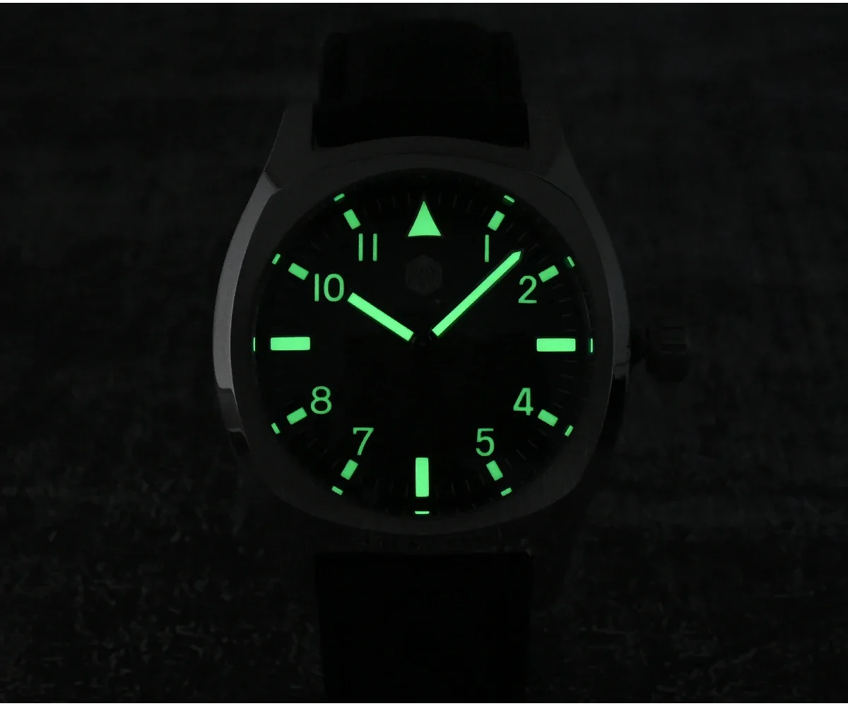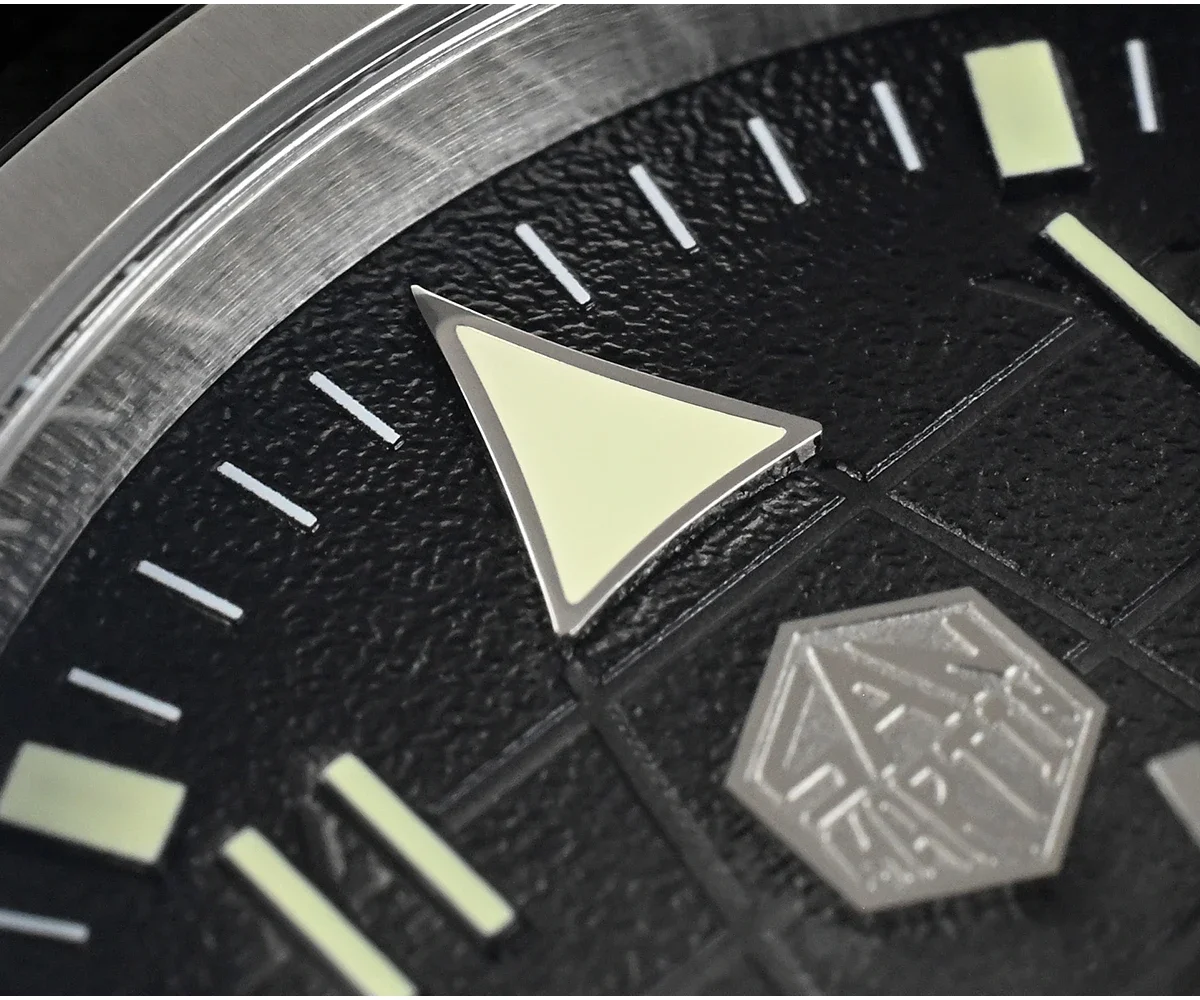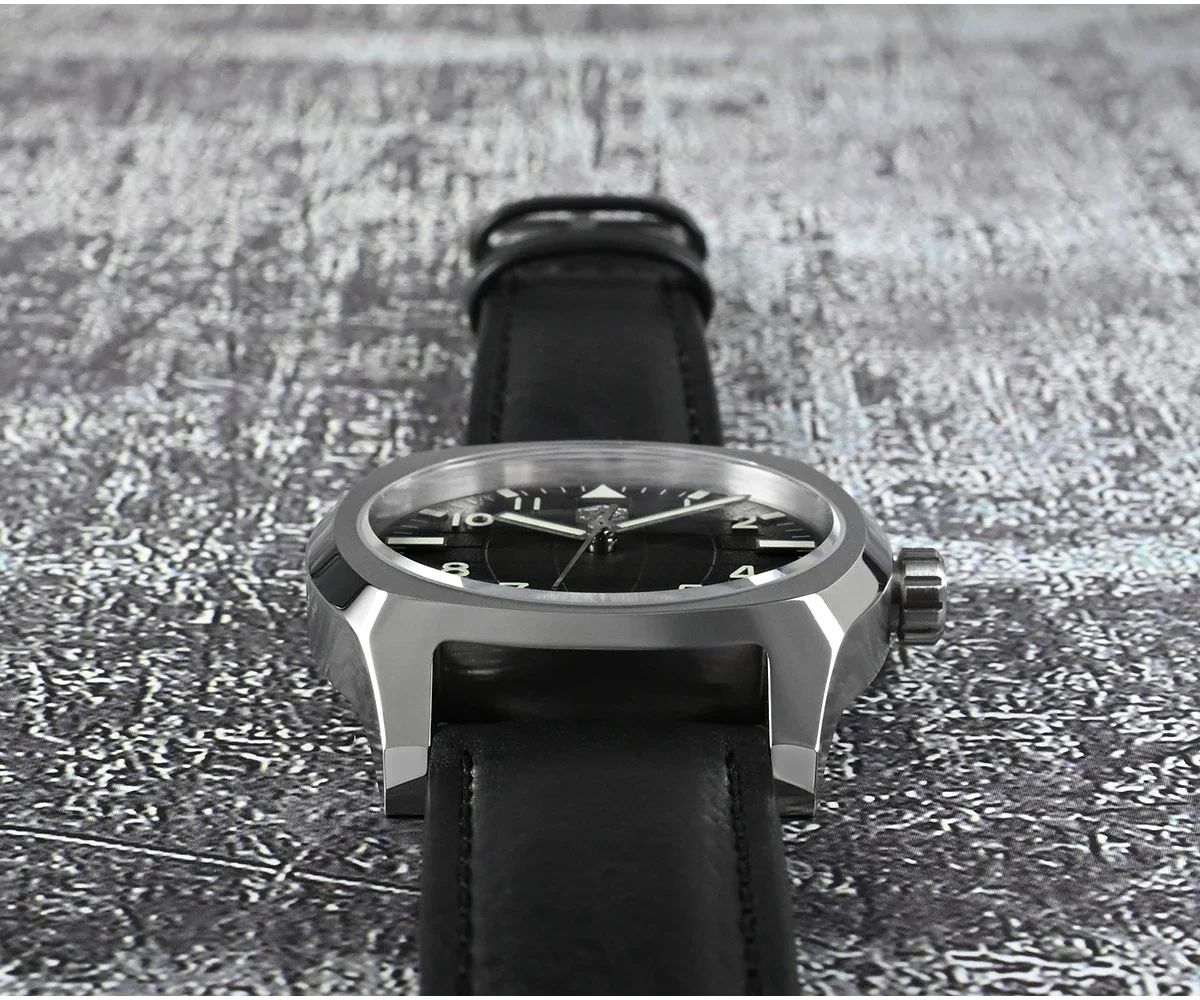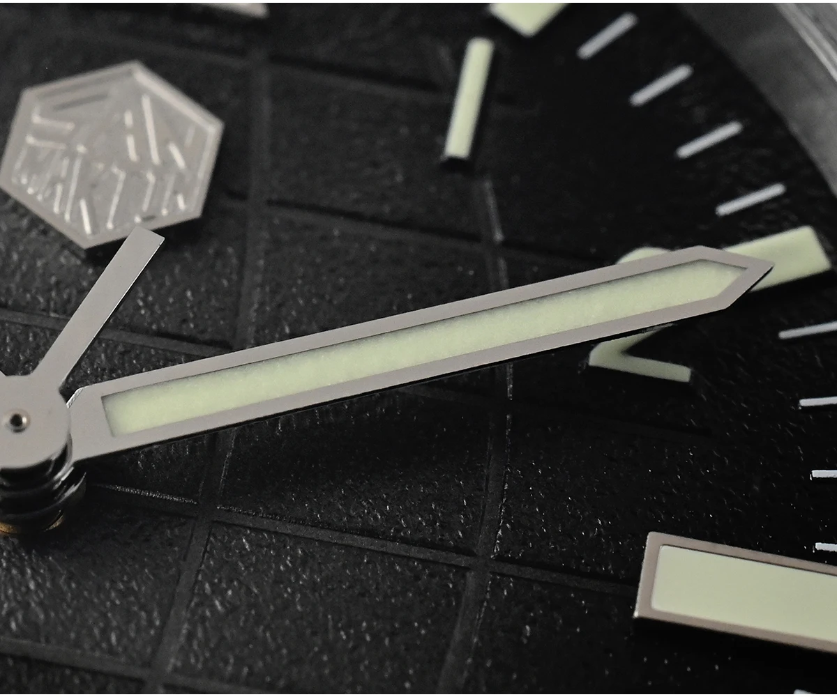 The San Martin Dress Watch SN0026 features a 38mm case with a distinctive grid-textured dial powered by a reliable PT5000 SW200 automatic movement. Its sapphire crystal ensures durability, while the 10 BAR water resistance provides practical protection. Enhanced with C3 lume, this timepiece offers excellent legibility in low light. Designed for discerning enthusiasts, it blends original aesthetics with robust performance.
