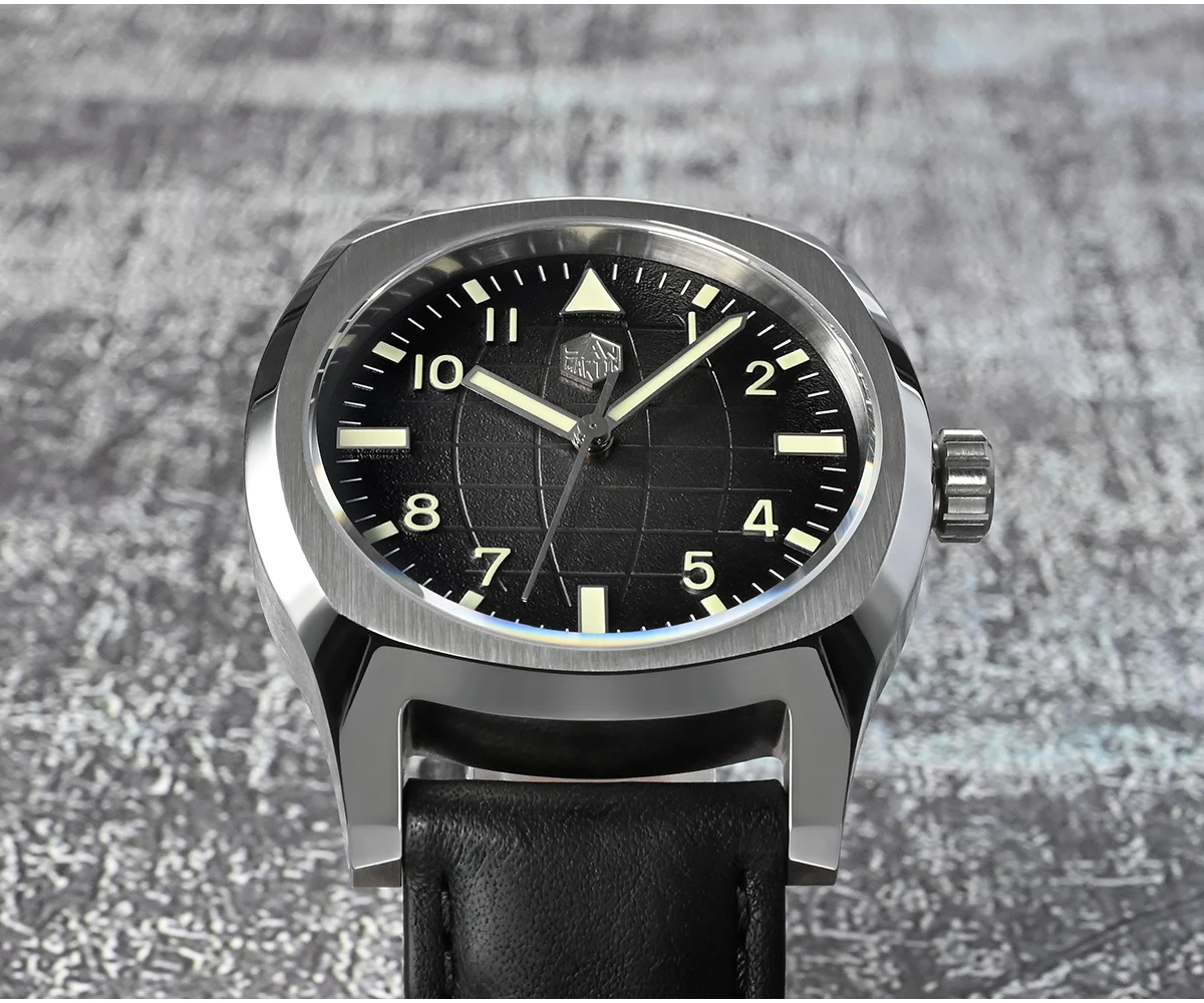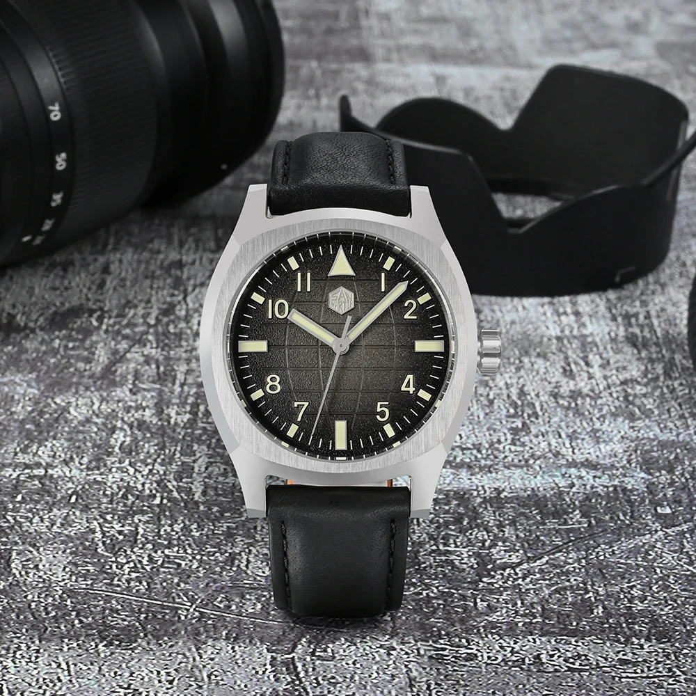 San Martin Dress Watch SN0026 38mm PT5000 SW200 Automatic Original Design Grid Textured Dial 10Bar C3 Lume Sapphire