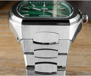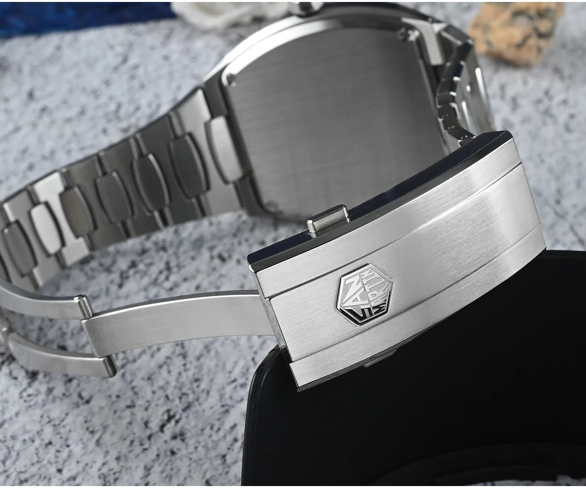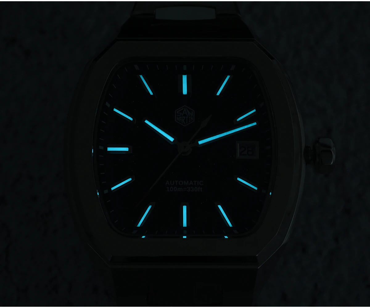 The San Martin Dress Watch SN0145 features a sophisticated 39.5mm tonneau case with a luxury mineral dial, combining classic elegance with modern design. Powered by the reliable PT5000 SW200 automatic movement, it offers precise timekeeping and durability. The watch is equipped with anti-reflective sapphire crystal for enhanced clarity and scratch resistance. Luminous markers ensure visibility in low light, making it both functional and stylish for formal occasions. This timepiece exemplifies expert craftsmanship suited for discerning watch enthusiasts.