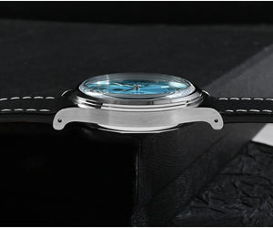 The San Martin Men’s Quartz Watch VK64 Chronograph combines precision and style in a compact 38mm case. Featuring a durable sapphire glass crystal, it offers excellent scratch resistance for everyday wear. The quick-release leather strap ensures effortless customization and comfort. This fashion-forward wristwatch is ideal for those seeking a reliable chronograph with a refined, casual look.