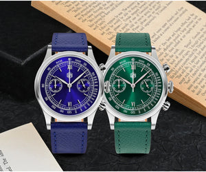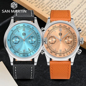 San Martin Men Quartz Watch VK64 Chronograph 38mm SN0101 Sapphire Glass Quick Release Strap 5bar