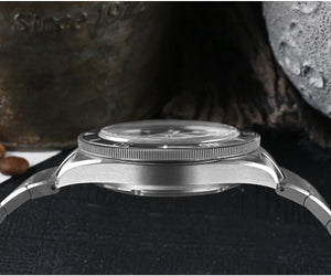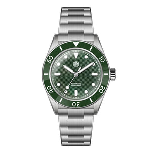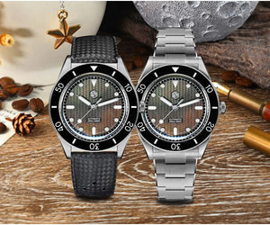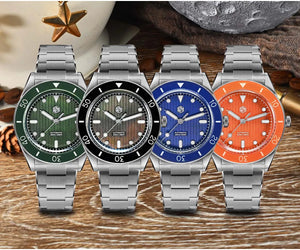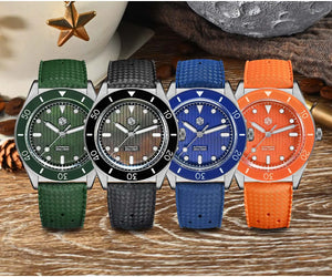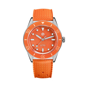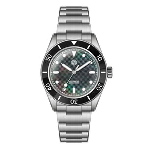 The San Martin SN0151 represents a refined approach to sport watch design, combining classical aesthetics with reliable mechanical performance. Its 39mm case houses a Miyota 90S5 automatic movement, delivering consistent timekeeping for daily wear and adventure alike. The guilloche mother-of-pearl dial catches light beautifully, while the sapphire bezel resists scratches and maintains clarity over years of use. Luminous hands and indices ensure visibility in low-light conditions. With 20 ATM water resistance, this timepiece handles swimming, snorkeling, and water sports confidently. A versatile companion that balances elegance with functionality.