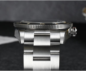 The San Martin SN0138G is a refined 37mm vintage-style diver’s watch, crafted for precision and durability. Powered by the reliable NH35 automatic movement, it features an anti-reflective sapphire crystal for enhanced clarity and a C3 luminous dial for superior visibility underwater. With a robust 20-bar water resistance, this timepiece seamlessly blends classic design with modern functionality, making it ideal for professional divers and watch enthusiasts alike.