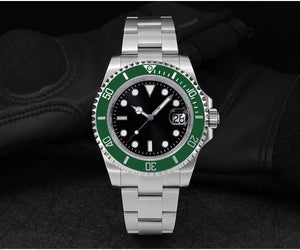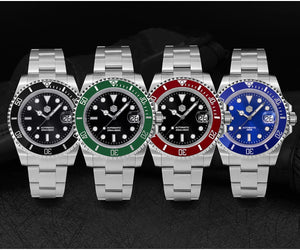 Bezel: Black, Blue, Green, Red, Unidirectional Bezel,Ceramic Top Ring, 12 O'clock Luminous Markers