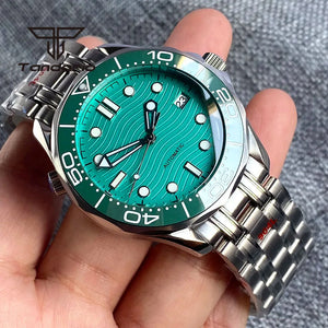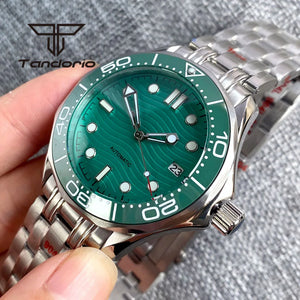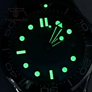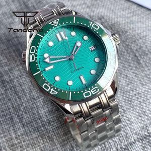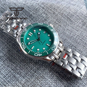 The Tandorio TD221G commands attention with its striking turquoise dial and professional 41mm case. Built around the proven NH35 automatic movement, this watch delivers consistent timekeeping with refined mechanical performance. The ceramic bezel resists scratches and fading, while luminous markers ensure visibility in low-light conditions. With 5ATM water resistance, it's equipped for recreational swimming and snorkeling. A sophisticated instrument that balances aesthetic appeal with practical durability for the discerning watch enthusiast.