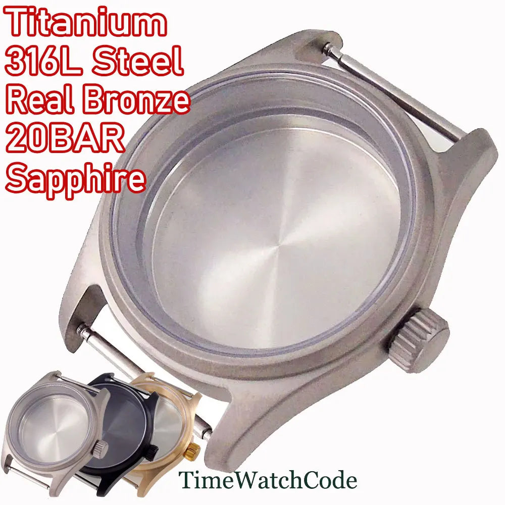 Solid Bronze / Titanium / Steel Pilot Watch Case – 36mm & 39mm – 200M Waterproof – Sapphire Crystal