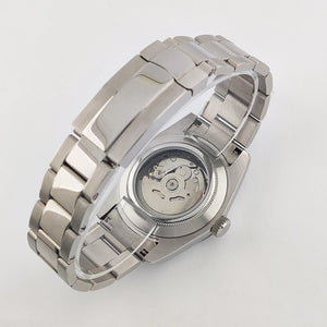 The Special Dial Oyster-Style Automatic Watch is a sleek and versatile timepiece designed for fashion-conscious individuals. Featuring a high-quality stainless steel case and band, this watch offers both durability and style. Powered by the reliable Japanese NH35 automatic movement, it ensures precise timekeeping with a smooth self-winding mechanism. The scratch-resistant sapphire crystal and 10Bar (100M) water resistance make it a robust choice for everyday wear. With a minimalist, numberless dial and a folding clasp with safety, this watch delivers sophistication with a modern touch.